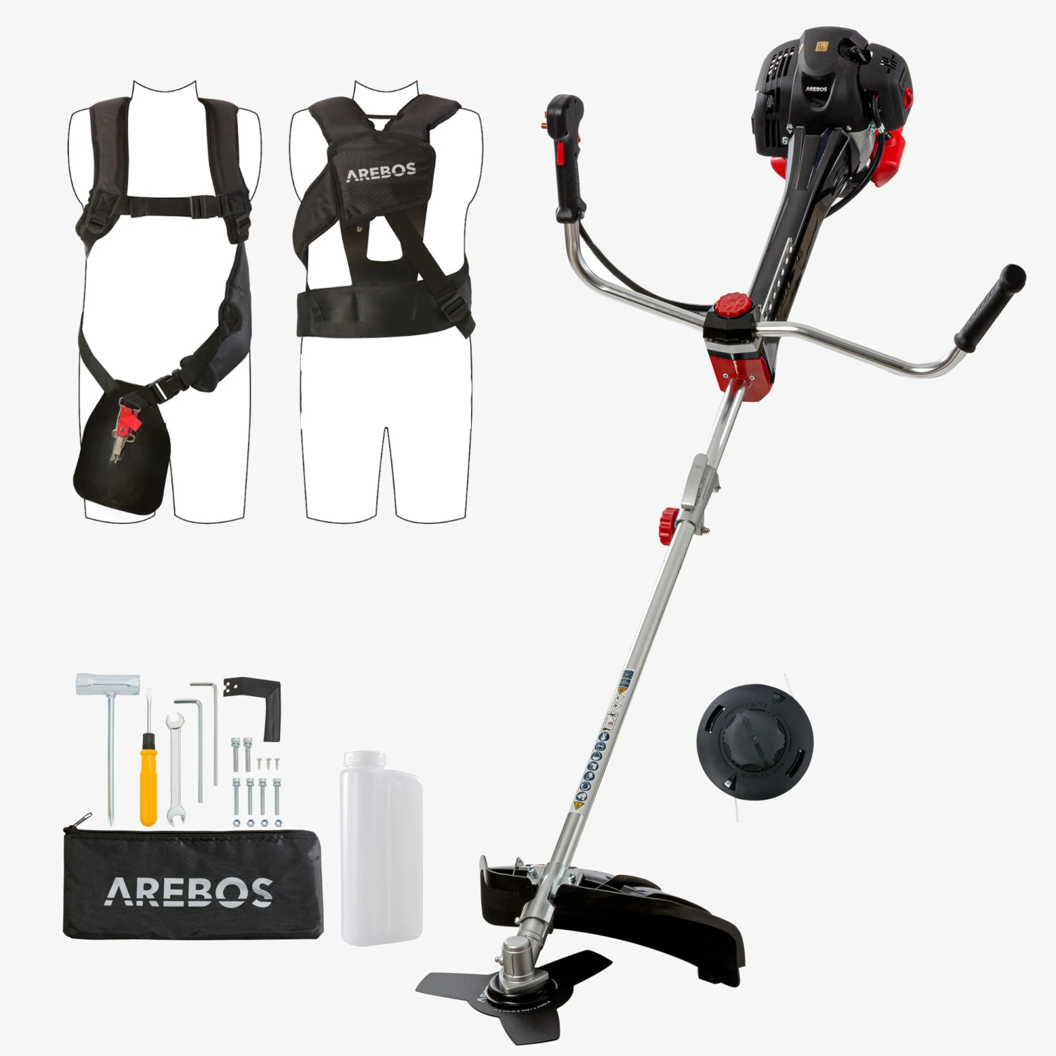 AREBOS Premium Benzin Motorsense Rasentrimmer 2in1