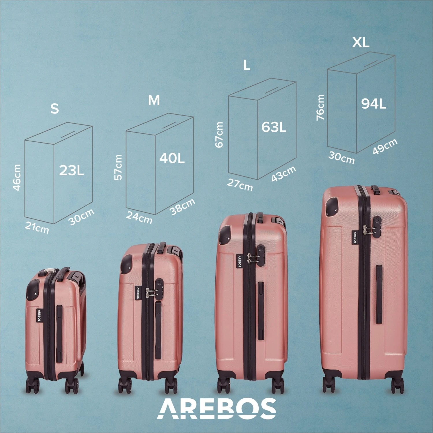 | Besondere Merkmale | Ausgekleideter Innenraum mit Trennwand und Kreuzgurt Organizer mit Netzfach für leichte Erreichbarkeit und OrdnungHartes ABS MaterialStark, leicht und kratzfestDer höhenverstellbare Teleskopgriff sorgt für leichtes schieben oder ziehenIntegriertes Reißverschluss-Schloss – für mehr SicherheitDoppelter Reißverschluss, Anti-BurstZwei praktische Seitengriffe für einfaches Anheben und TragenHoher Fahrkomfort durch die 4 leisen und 360° schwenkbaren RollenDie unterschiedlichen Größen sind ineinander stapelbar |