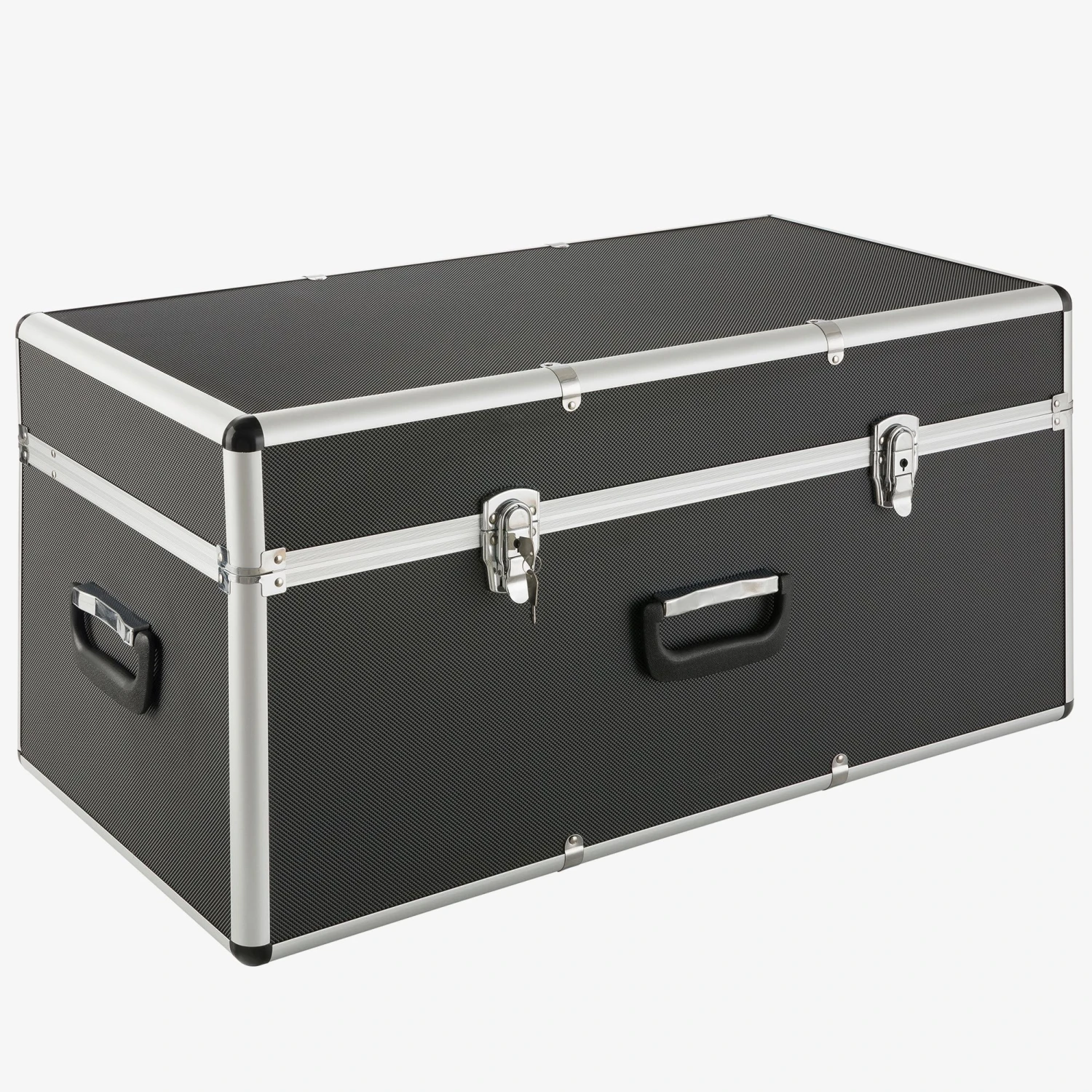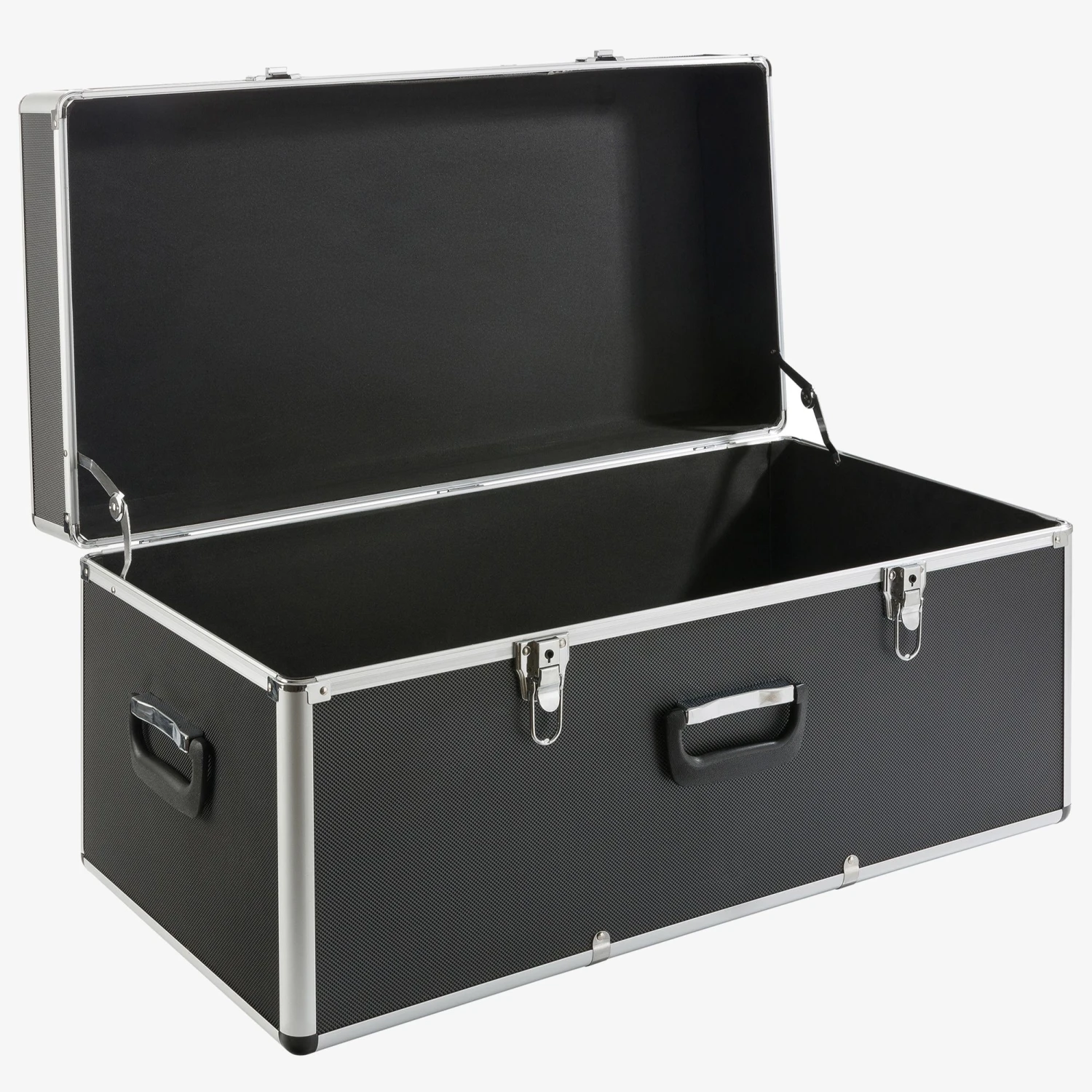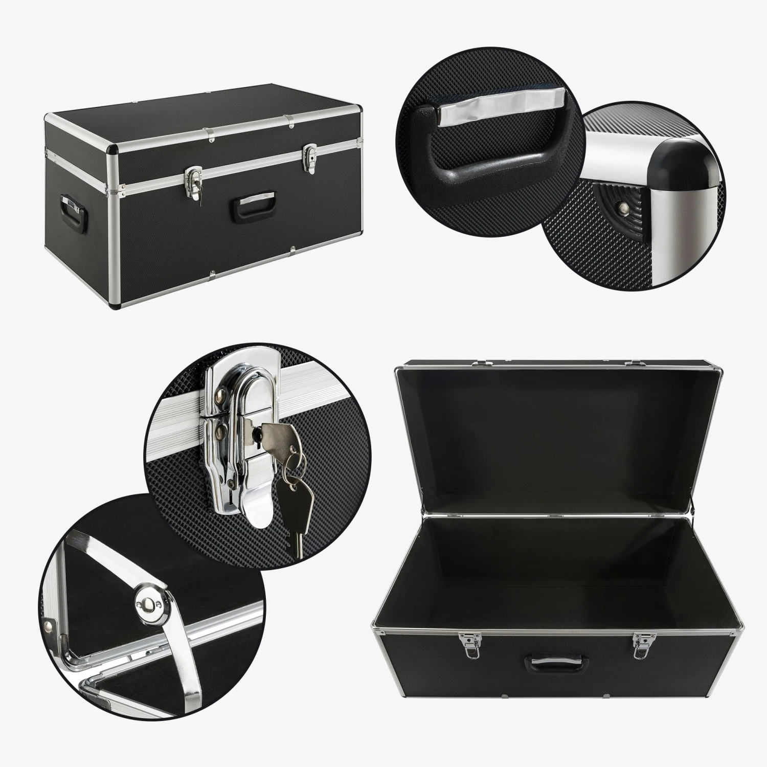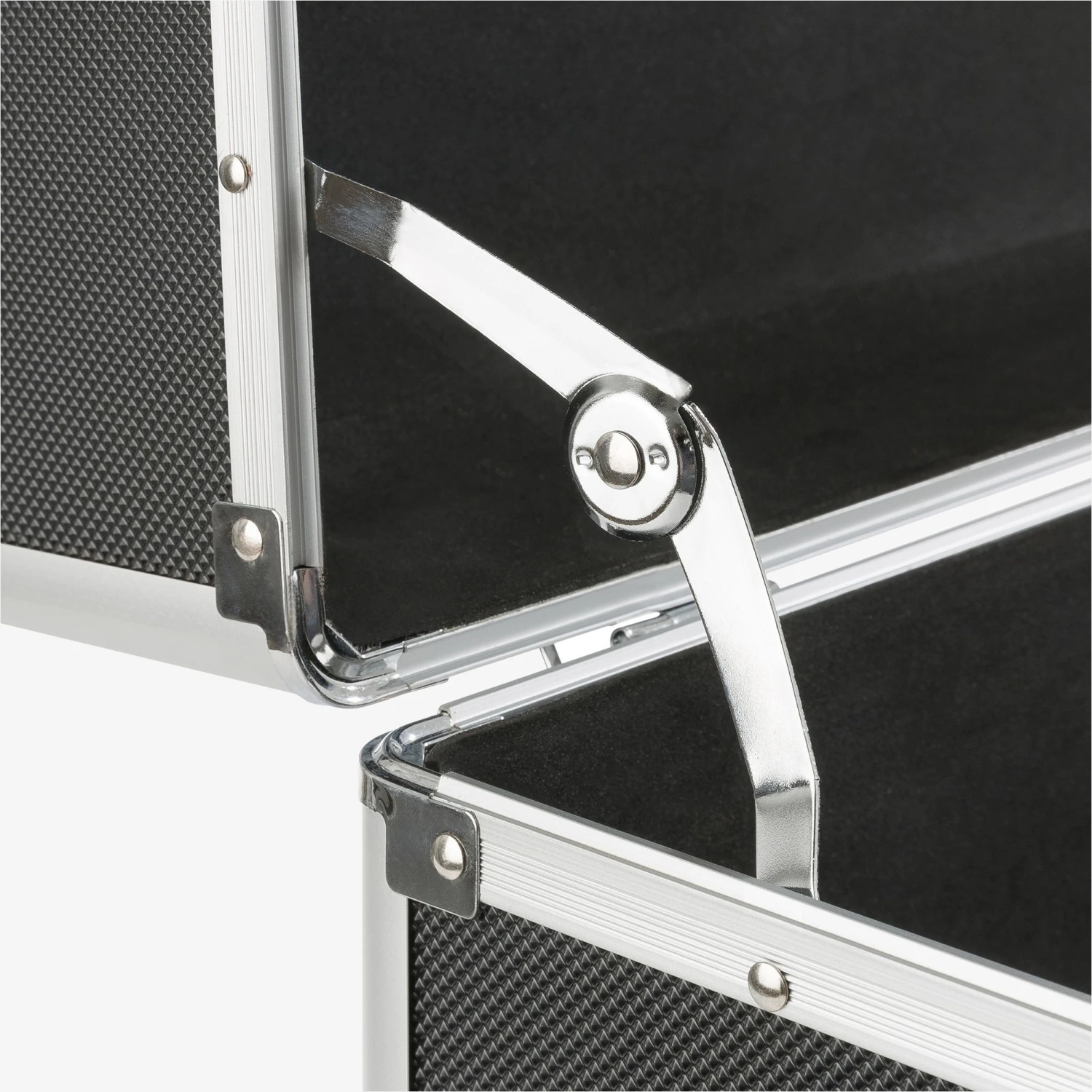 Der schwarze Universal-Koffer ist hergestellt aus widerstandsfähigem Aluminium, bzw. Kunststoff und besitzen eine Innenverkleidung aus EVA zum Schutz des Inhalts vor Schlägen, Stößen, Kratzern.