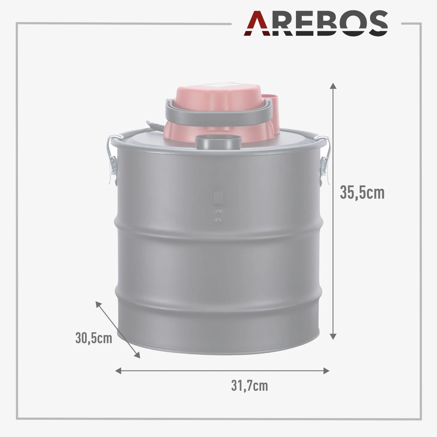 Der Sauger ist mit einem nützlichen Tragegriff ausgestattet der einen bequemen Transport ermöglicht. Zusätzlich dazu bietet unser AREBOS Aschesauger an der Gehäuseoberseite einen Aufsteckstutzen für den Schlauch, um eine noch bessere Ordnung zu verschaffen.