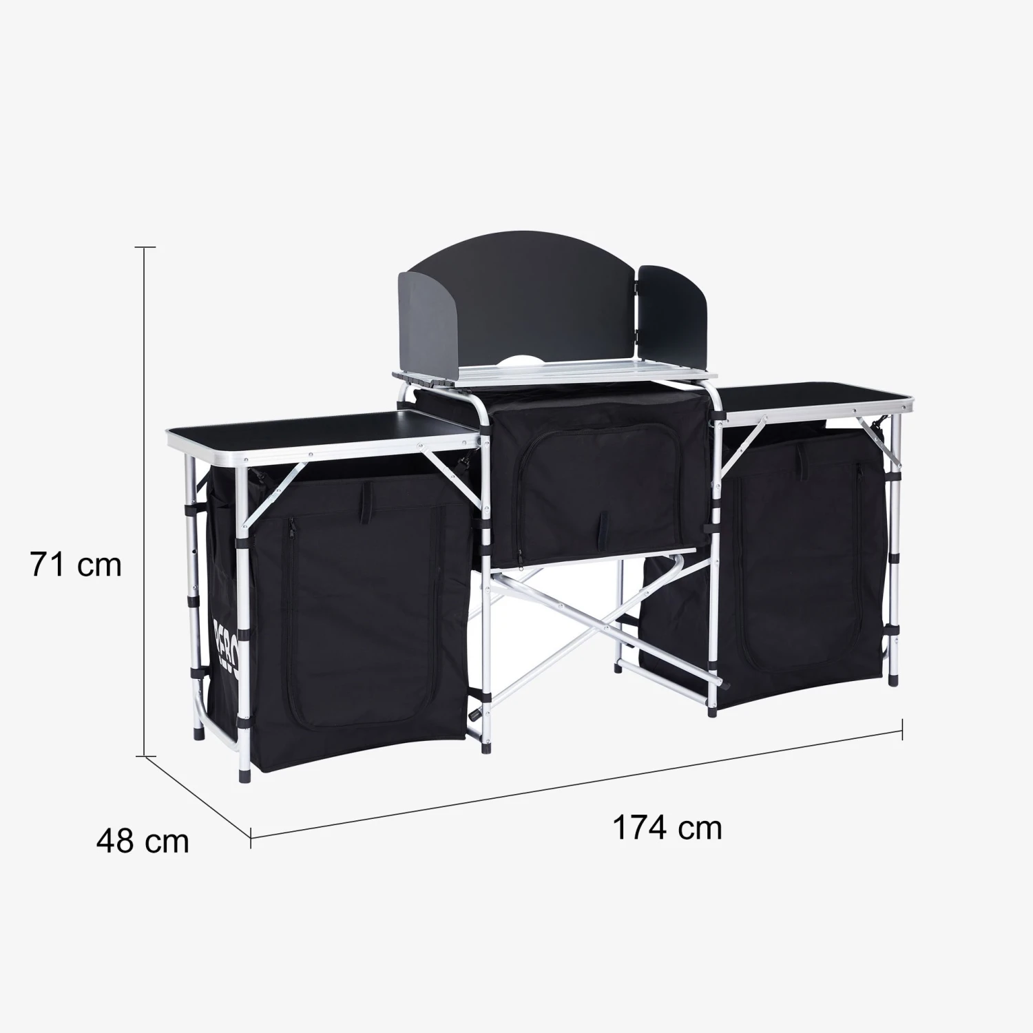 Die Campingküche ist für Outdoor Aktivitäten wie z.B. Camping, Partys oder Buffet geeignet. Auch für den Garten oder zu Hause eine praktische Alternative. Man kann die Küche schnell auf- und abbauen und diese ultraleicht und platzsparend verstauen.