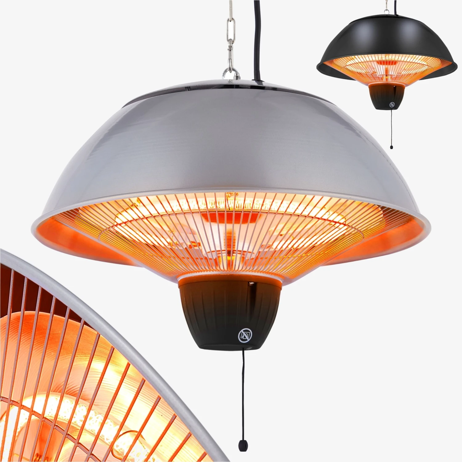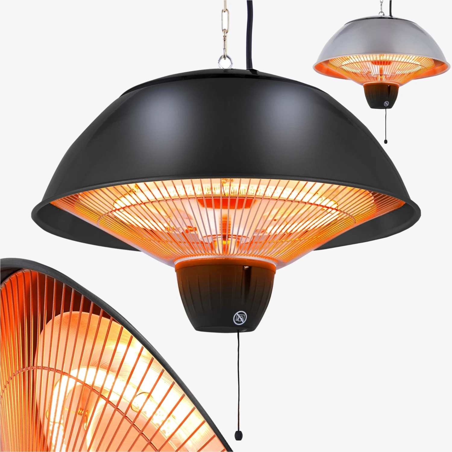 AREBOS Deckenheizstrahler rund 1500W – mit Zugseil