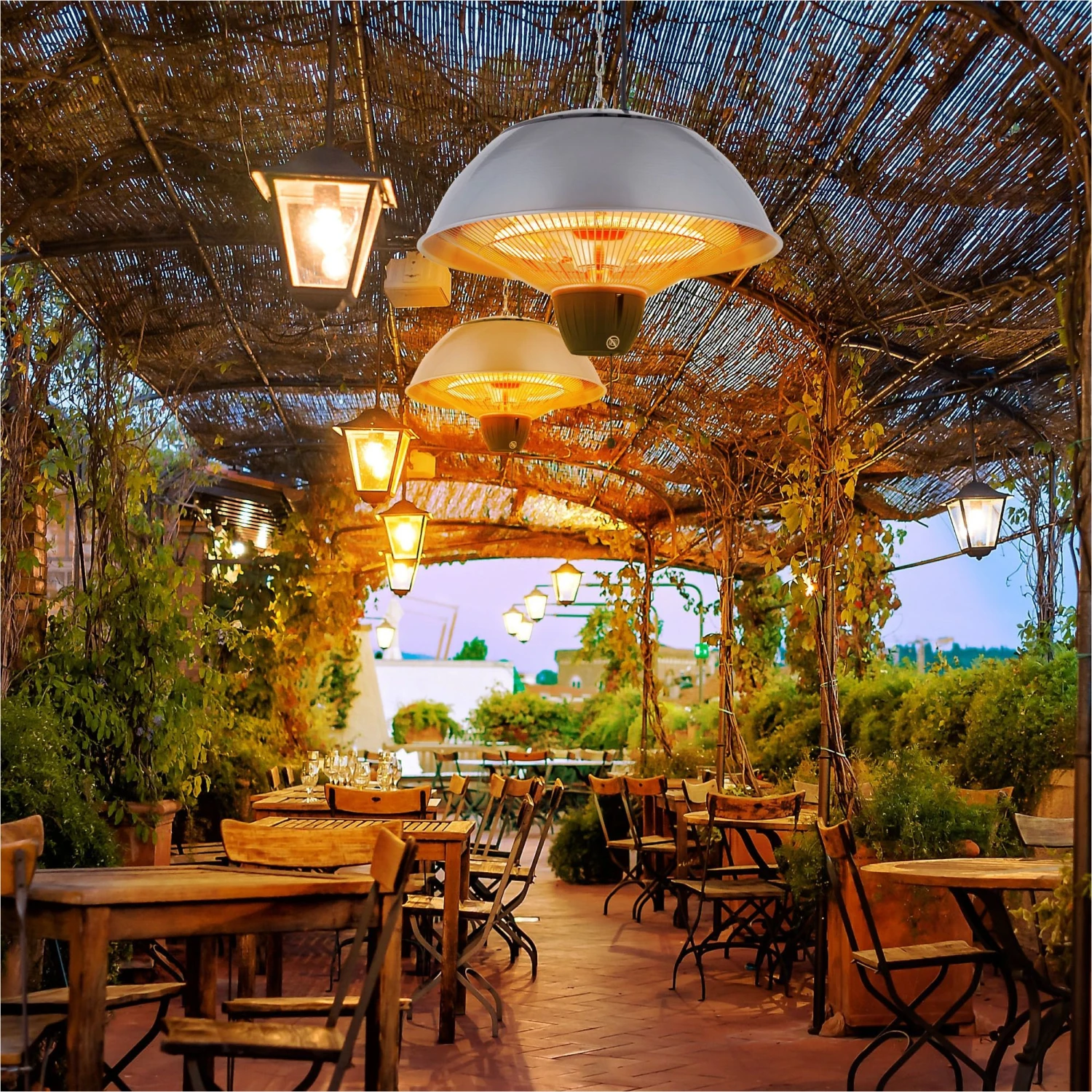Wenn die Sommersonne am Horizont verschwindet, erhebt sich eine andere, rot strahlende Wärmequelle über Ihrem Haupt: Der AREBOS Infrarot Deckenstrahler verlängert das wohlig warme Empfinden natürlicher Sonnenstrahlen bis in die tiefe Nacht hinein.