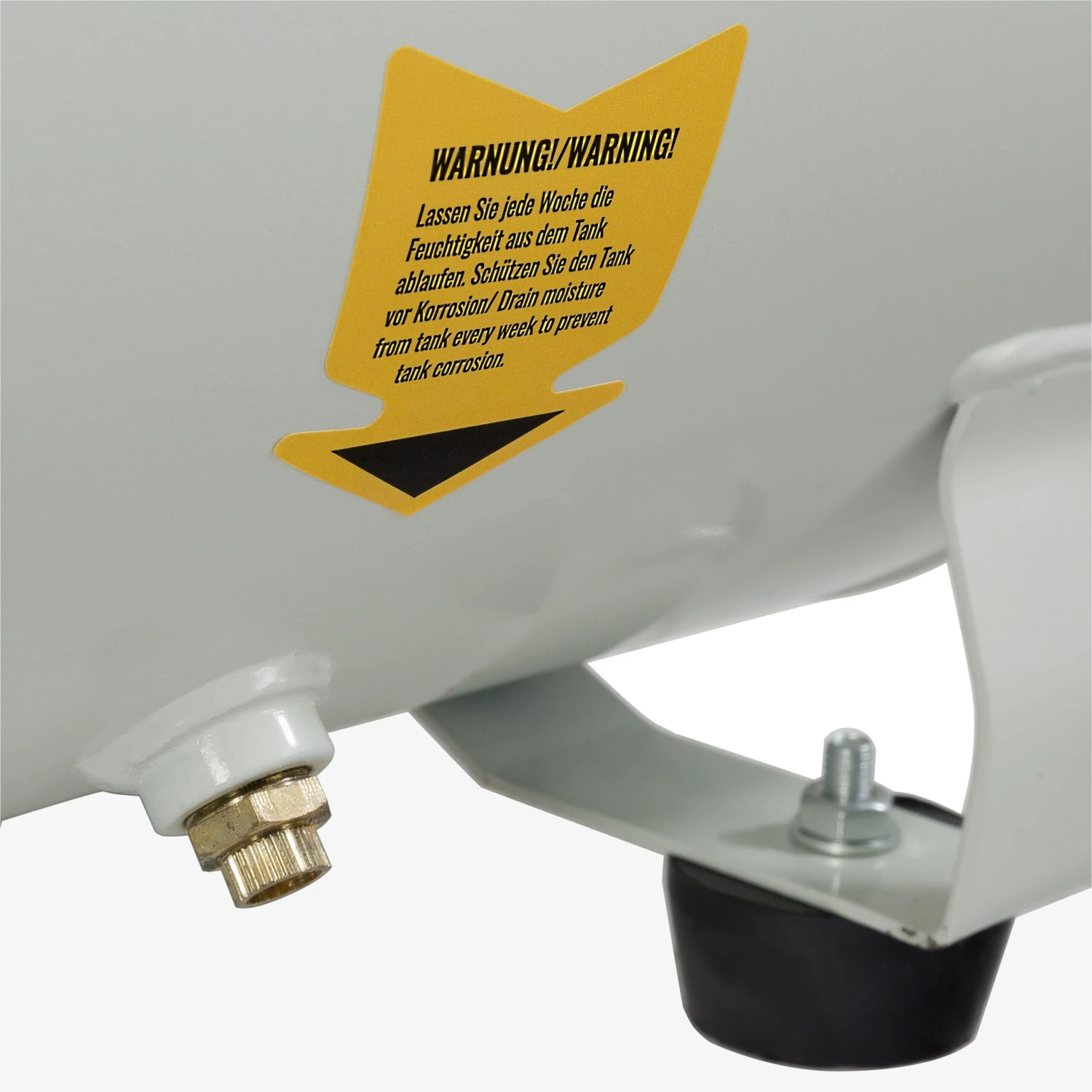 Der Luftkompressor kann schnell und einfach in Betrieb genommen werden, da dieser ölfrei arbeitet. Zwei Manometer für Behälter- und Arbeitsdruck liefern einen schnellen Überblick. Eine enorme Erleichterung zwischen den Arbeitsvorgängen bietet die zweifache Euro-Schnellkupplung, die einen besonders schnellen Werkzeugwechsel begünstigt. Möchten Sie den Arebos Luftkompressor transportieren, helfen zwei Räder und ein gummierter Handgriff bei der Handhabung.
