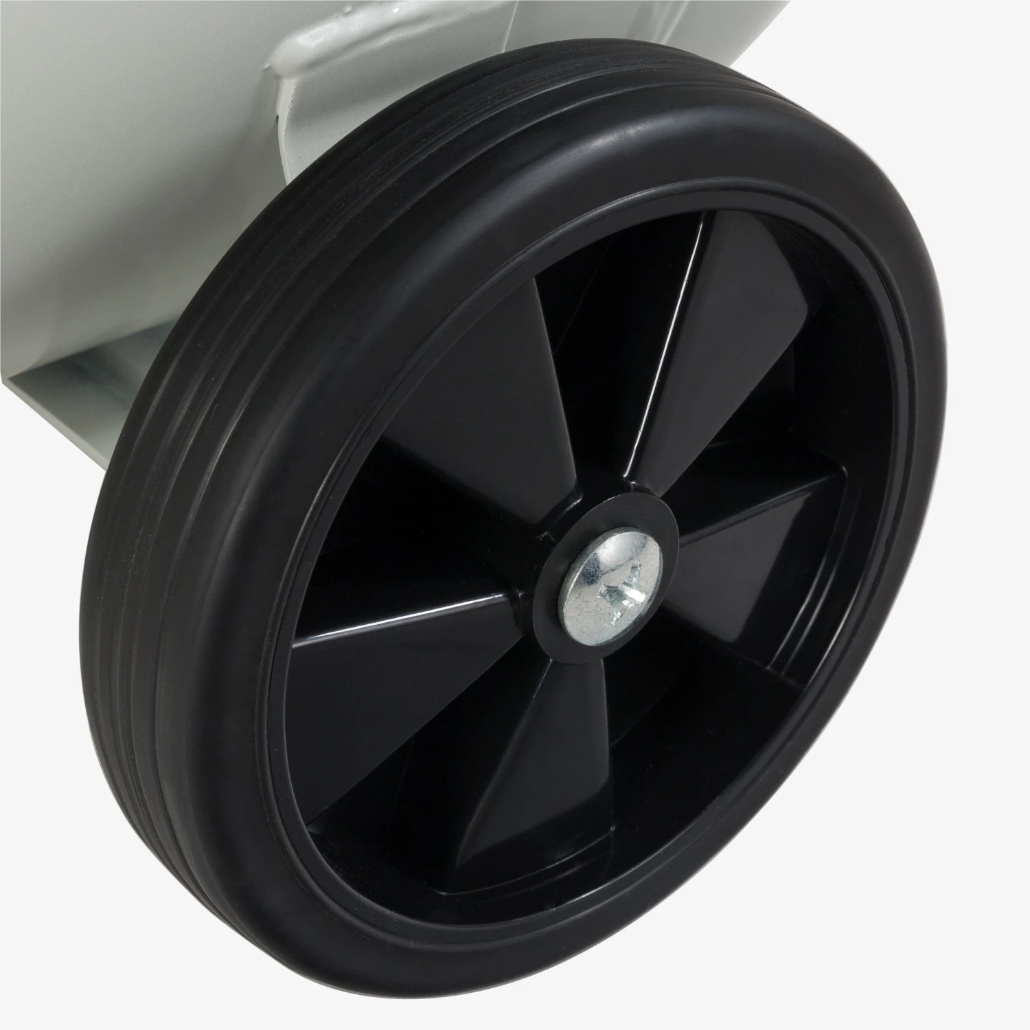 - Zwei Räder und gummierter Handgriff für einfachen Transport