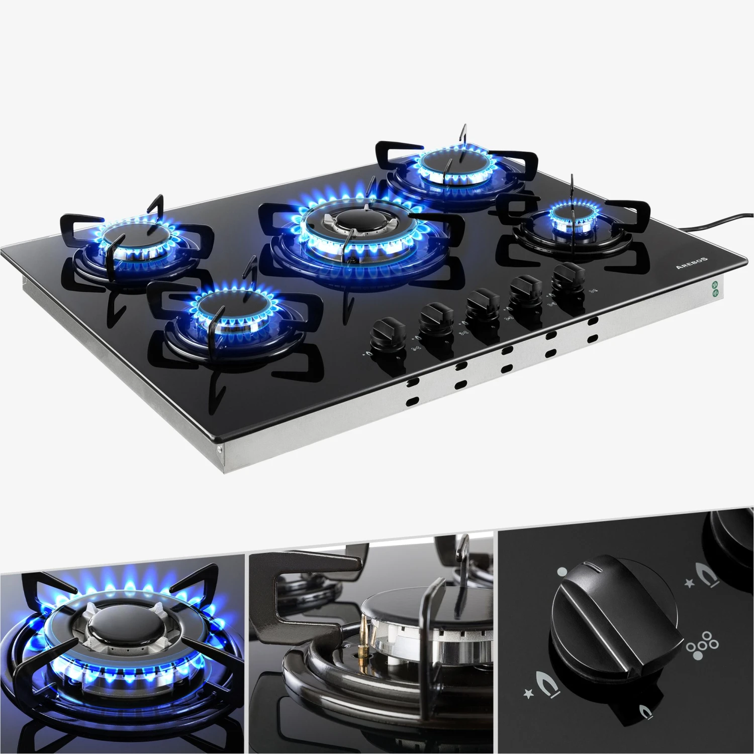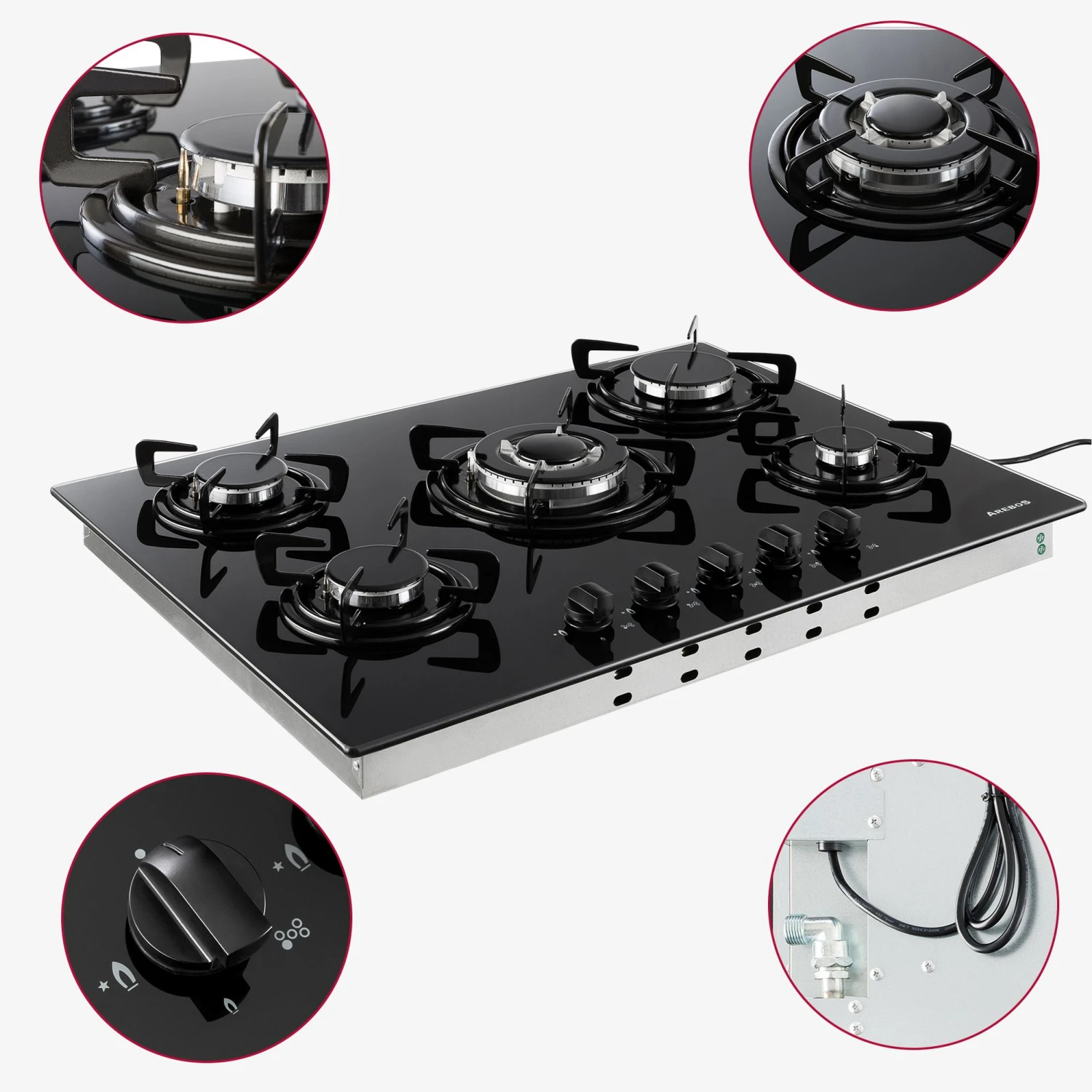 AREBOS Gaskochfeld 70 cm 5 Brenner