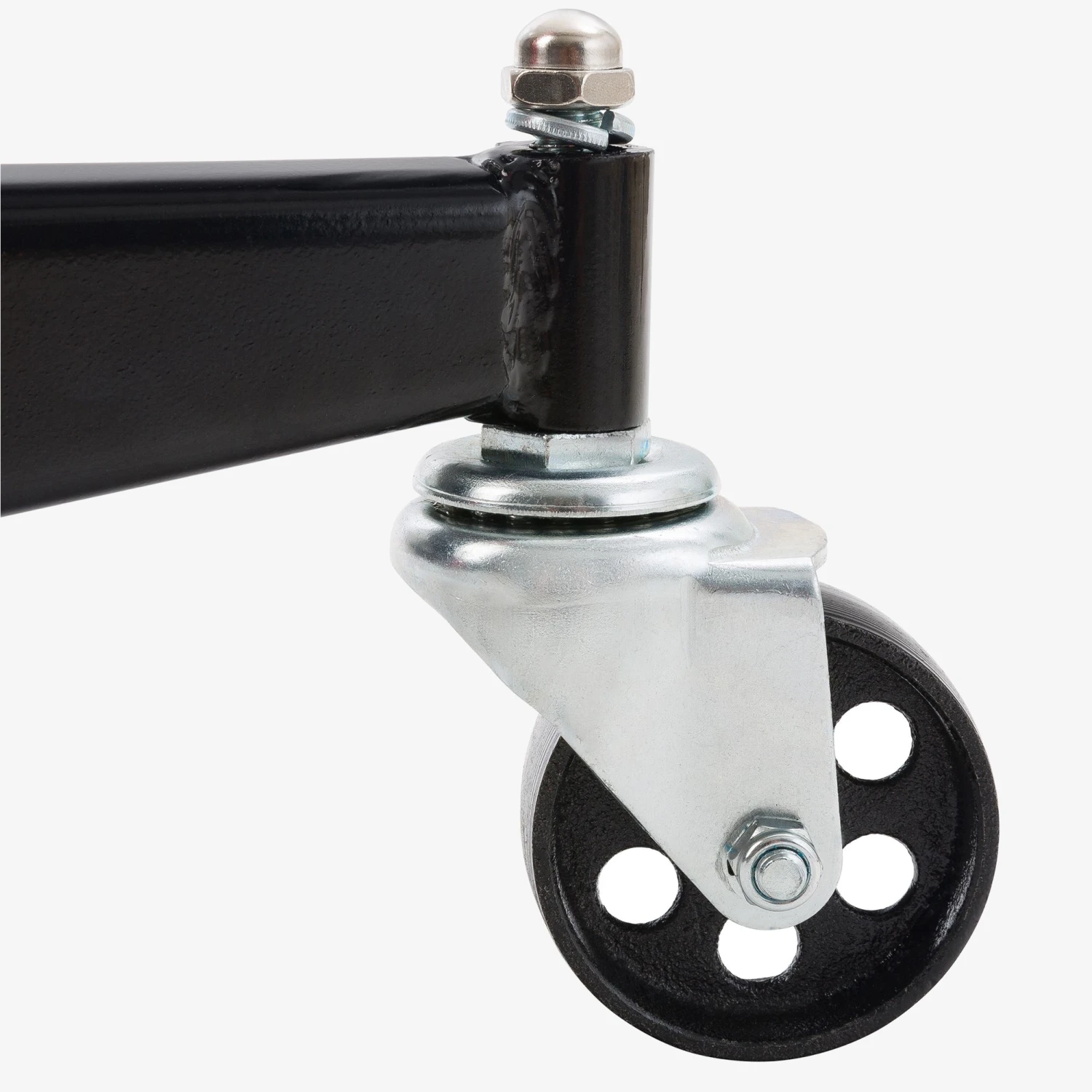 Der breite Radstand des Getriebehebers sorgt für Stabilität beim Heben und Manövrieren von schweren Lasten. Die Rollen sind kugelgelagert und mit einem Durchmesser von 75 mm besonders standfest.