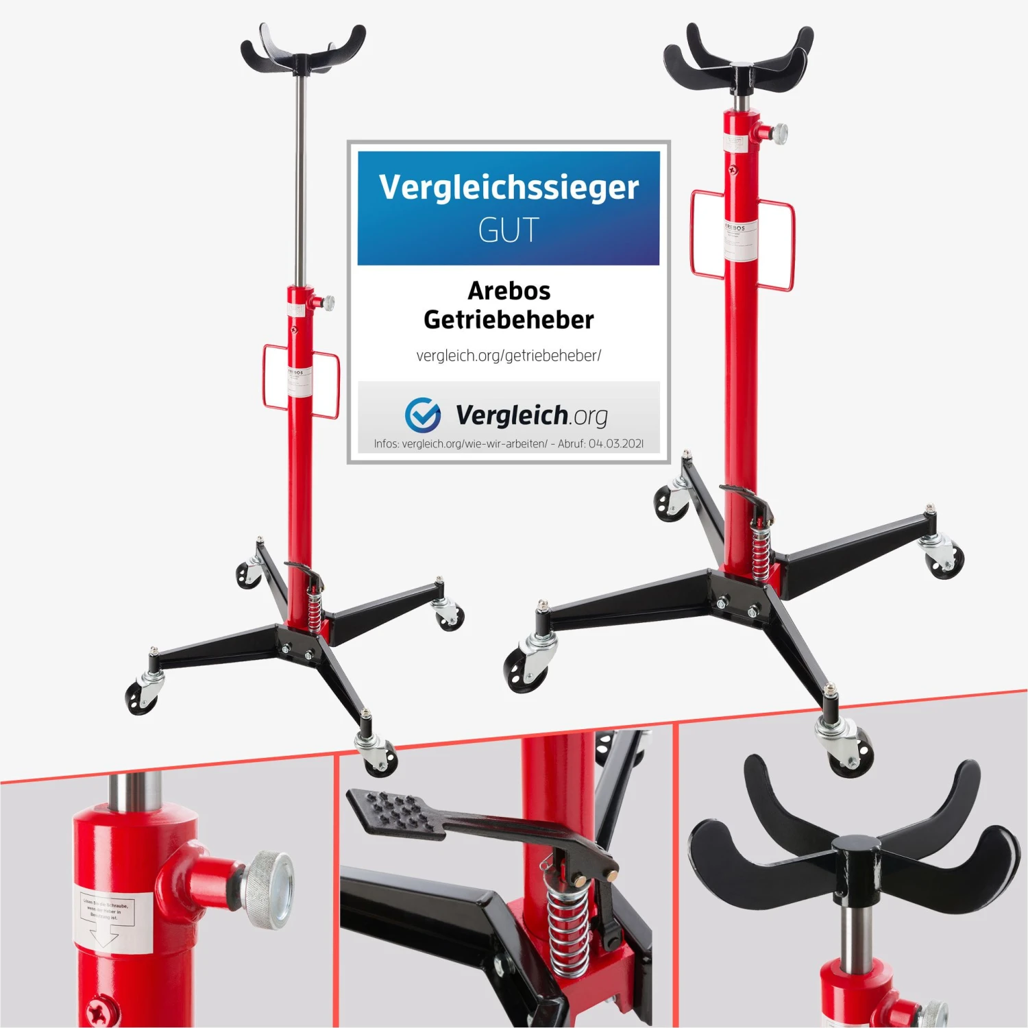Der AREBOS Getriebeheber wurde von unseren Kunden, in Bezug auf Qualität und Preis zum Vergleichssieger gekürt. Überzeugen Sie sich selbst von der tollen Qualität und Verarbeitung unseres Getriebehebers. Dank des hydraulischen Zylinders eignet er sich ideal zum Ein- und Ausbau von Getrieben und anderen Motorenteilen, sowie für viele Service- und Wartungsarbeiten.