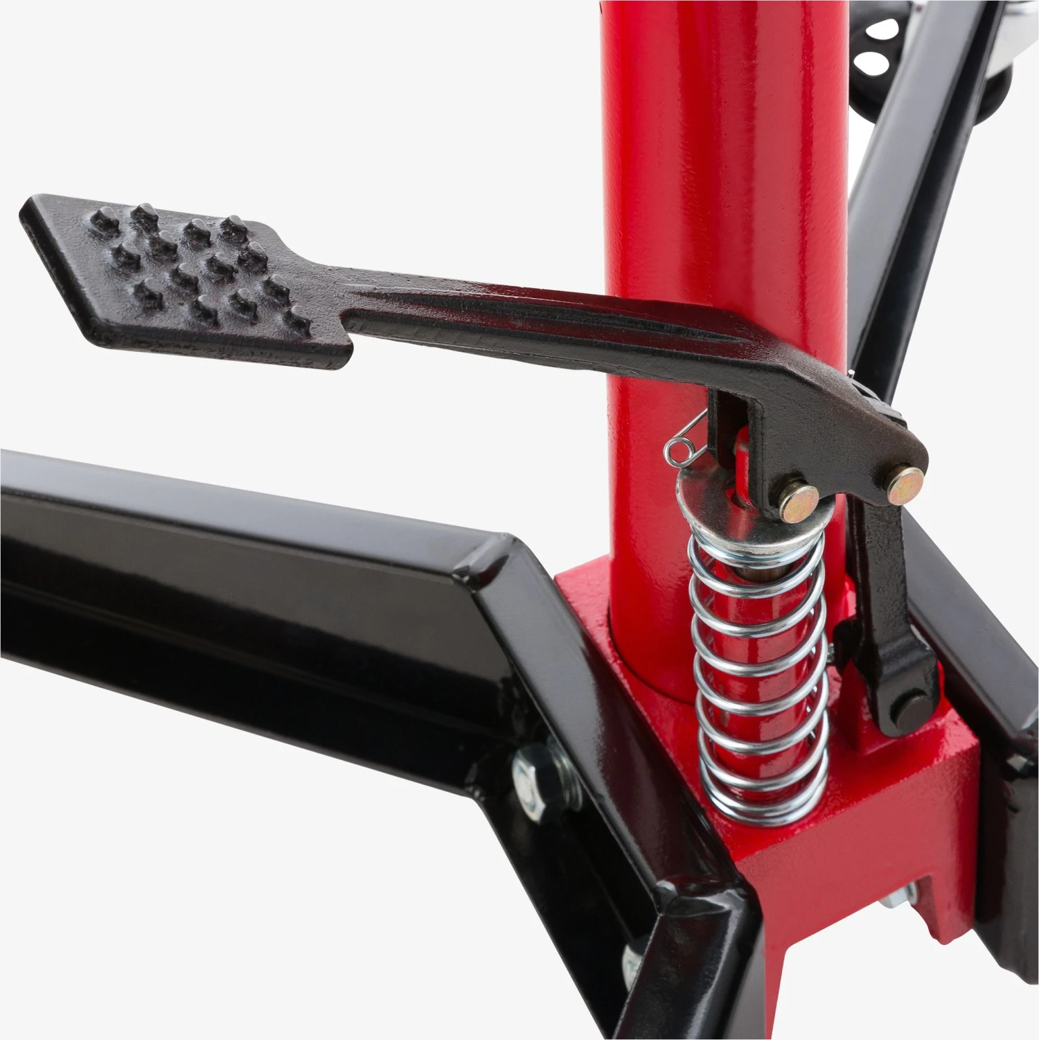 Kein mühsames Hochdrehen mehr! Profitieren Sie von der integrierten Hydraulik des AREBOS Getriebehebers. Treten Sie auf das Pedal, um Druck in dem Getriebeheber aufzubauen und die Greifkralle nach oben zu pumpen.
