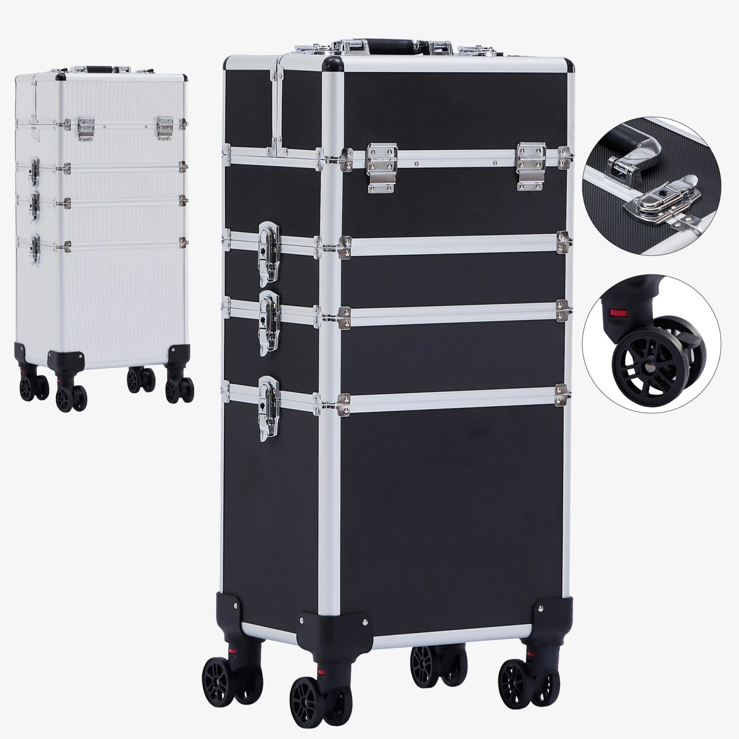 Der 4in1 Koffer mit praktischer Aufteilung: enthält 3 herausnehmbare Fächer, 1 großes Fach und 1 Schublade für organisierte Aufbewahrung.