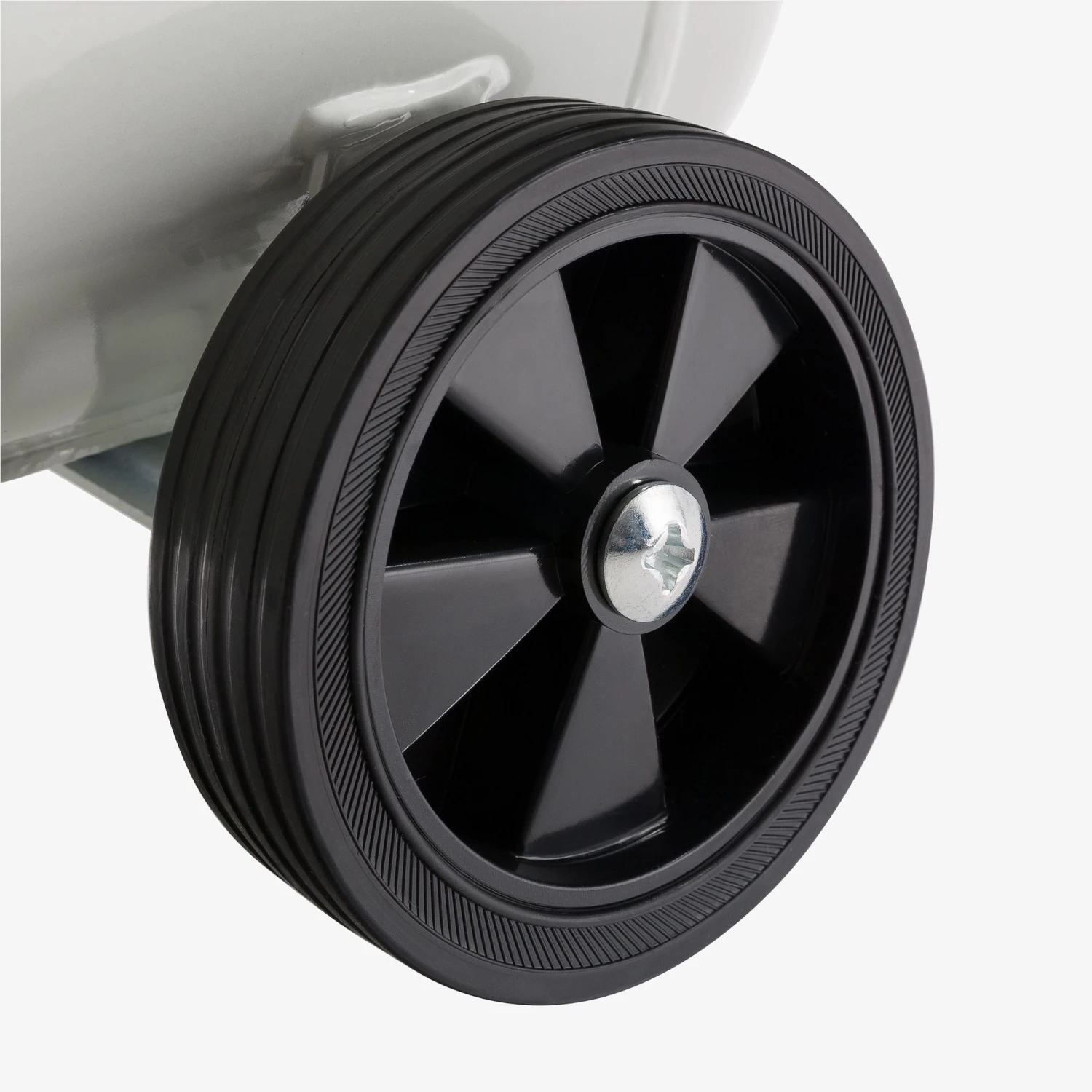 Möchten Sie den AREBOS Luftkompressor transportieren, helfen zwei Räder und ein gummierter Handgriff bei der Handhabung. Gönnen Sie sich dieses Gefühl der Sicherheit, gepaart mit einem leistungsfähigen, robusten Gerät.