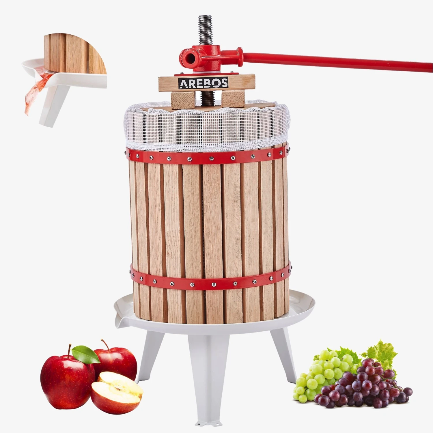 Die Obstpresse von AREBOS ist ideal, wenn große Mengen Obst mit nur geringem Kraftaufwand entsaftet werden sollen. Dank des großen Fassungsvermögens trotz geringer Ausmaße lässt sich die Obstpresse sowohl für den professionellen Bereich als auch für die Saft- und Weinherstellung in Privathaushalten verwenden.