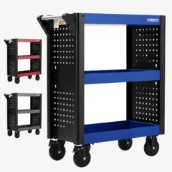 Durch seine praktische Größe kann der AREBOS Werkstattwagen in jede kleine Ecke passen. Die drei groß dimensionierten Etagen bieten viel Platz für allerlei Werkzeuge und Materialien.