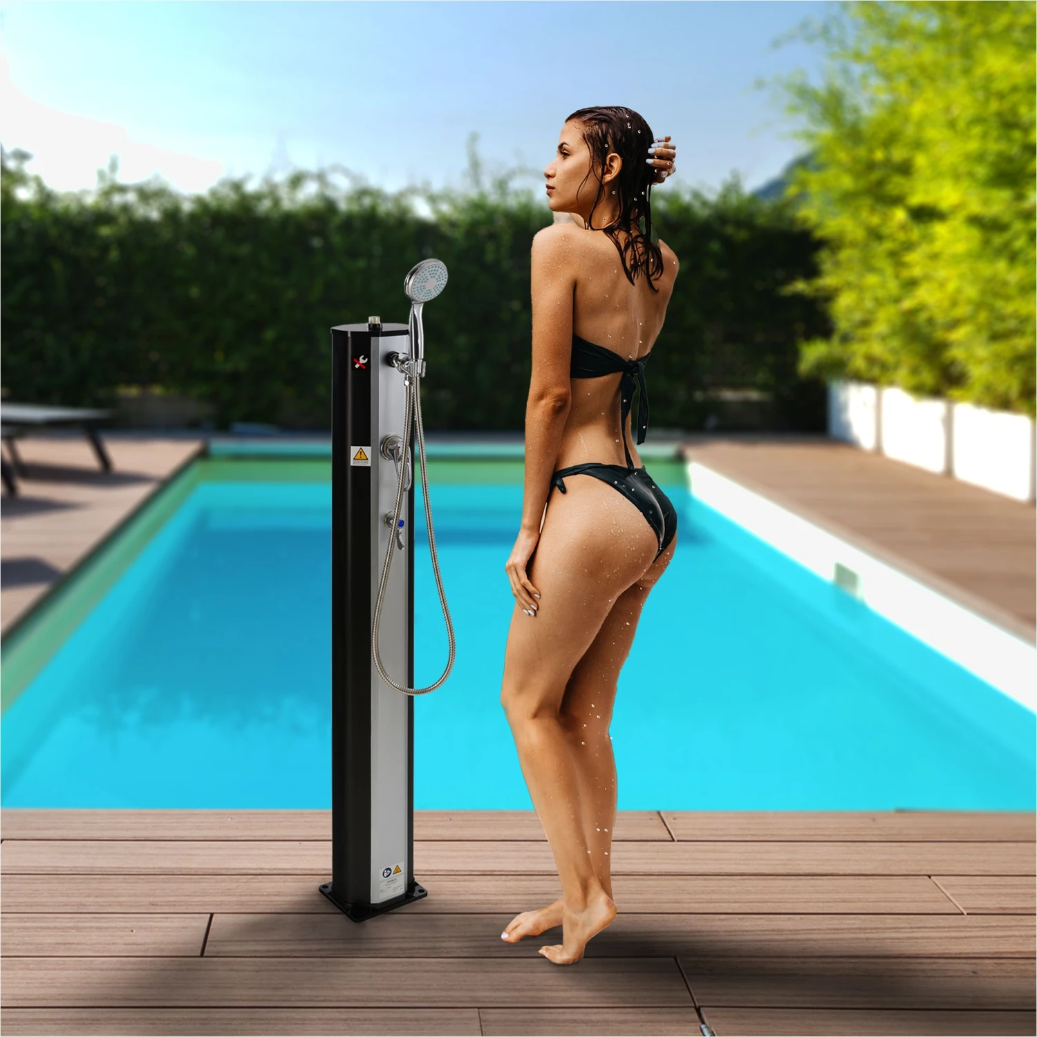 Die Sonnenstrahlen erhitzen auf natürliche Weise das Wasser in der Solardusche, sodass Energie eingespart werden kann. Es ist keinerlei Strom erforderlich – das spart Energie und schont gleichzeitig die Umwelt.