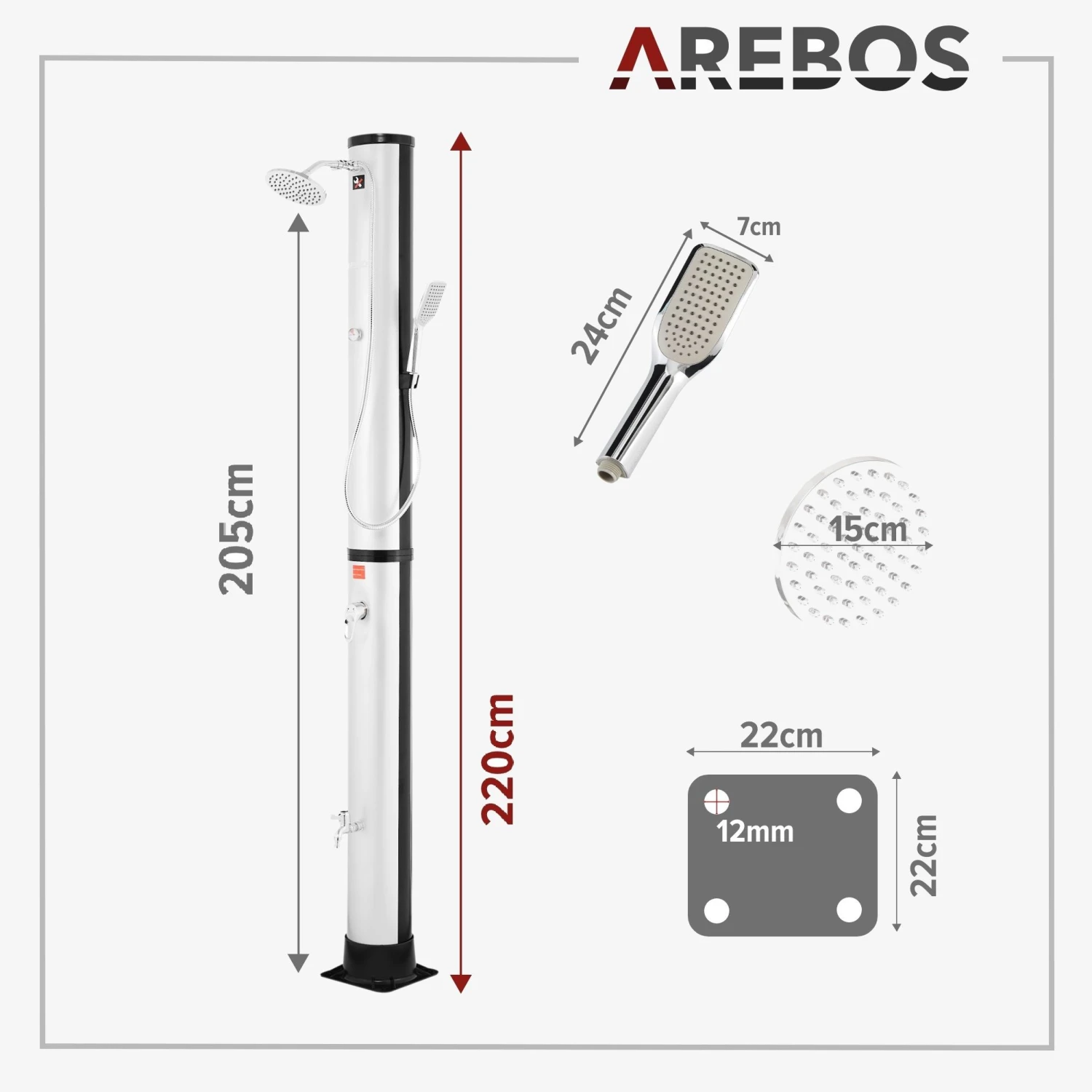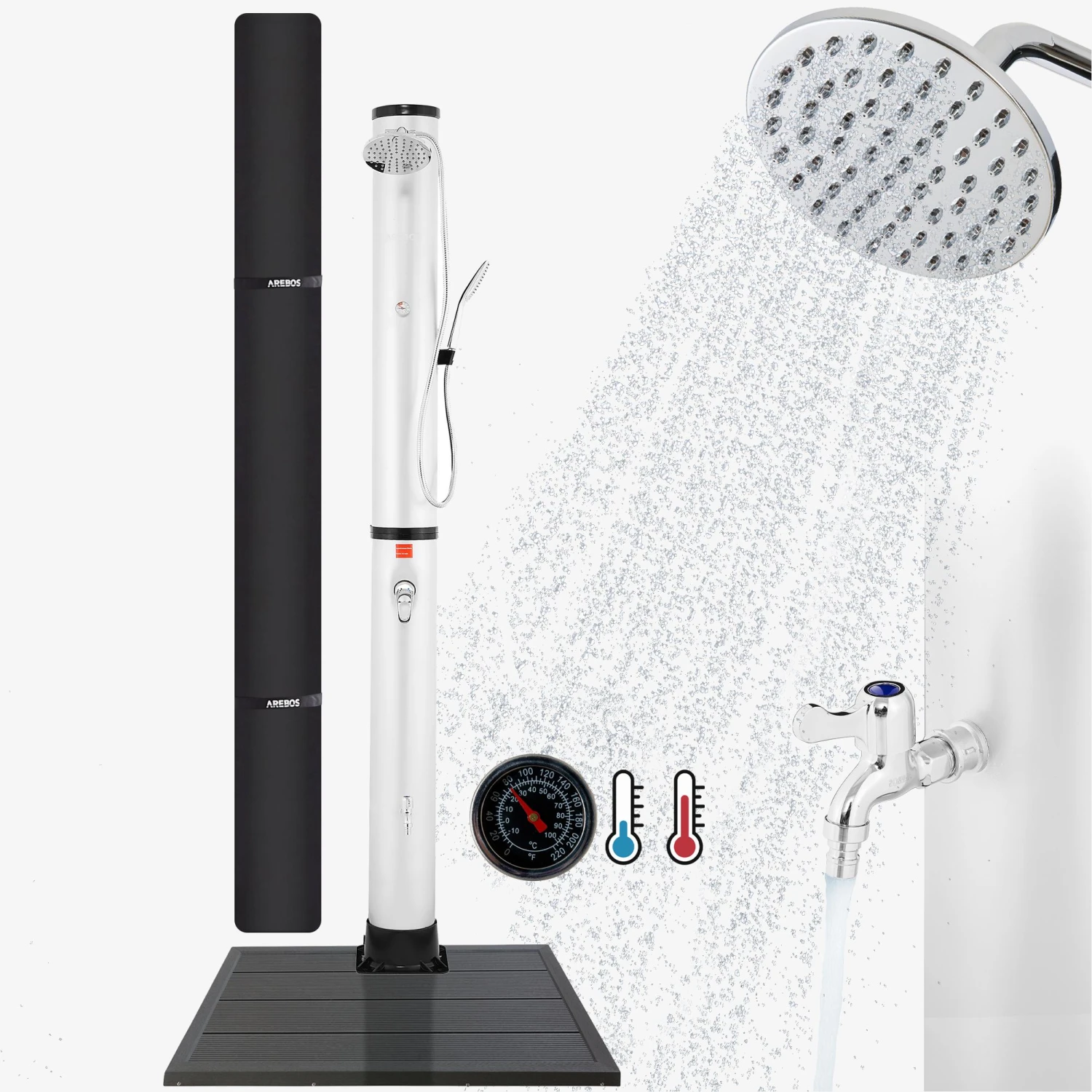 AREBOS Solardusche 40 L mit Thermometer und Handbrause