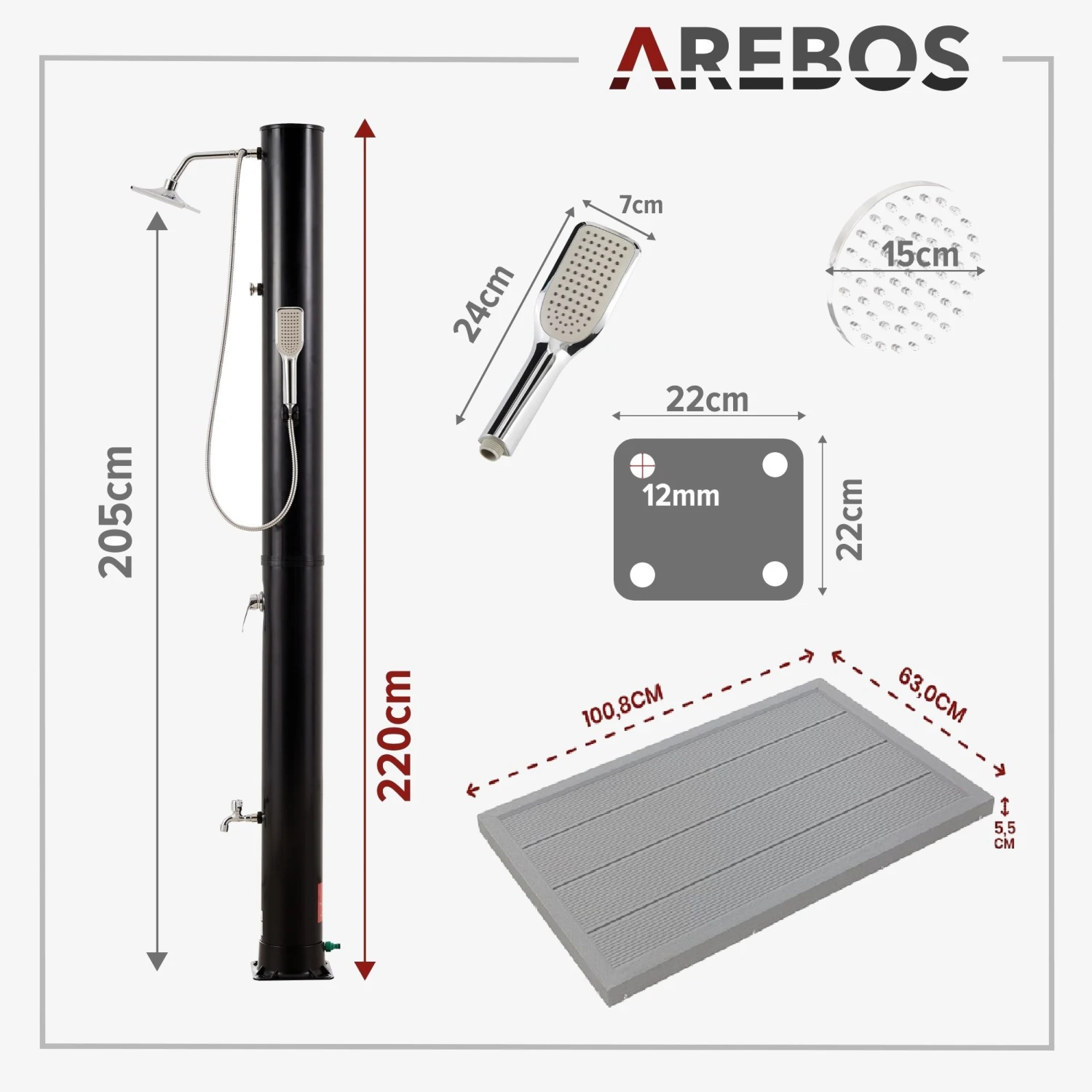 Die AREBOS Solardusche & das Bodenelement-Set ist einfach und in kurzer Zeit in Ihrem Garten oder Ihrer Terrasse zu montieren. Durch das elegante Design ist diese Kombination ein wahrer Hingucker.