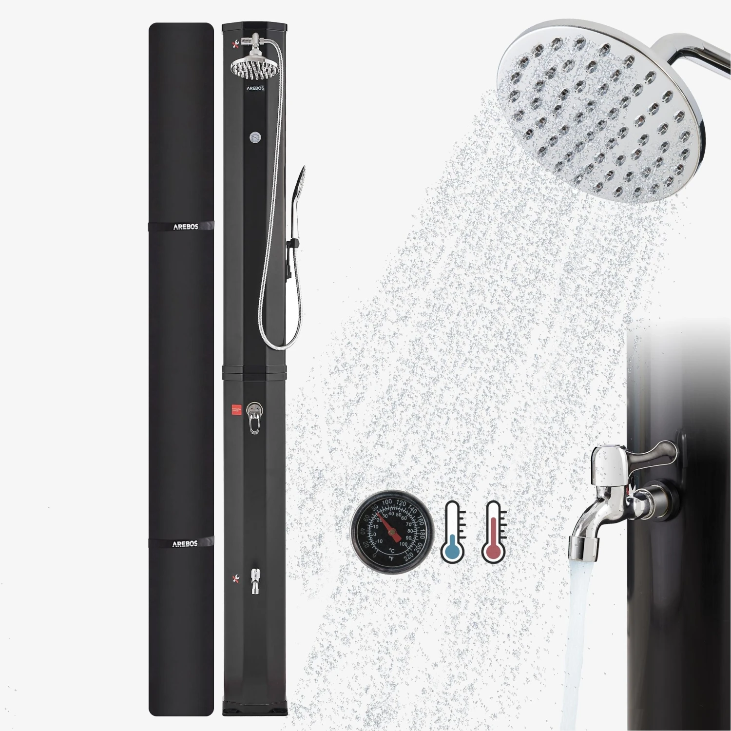 AREBOS Solardusche 60 L mit Thermometer und Handbrause