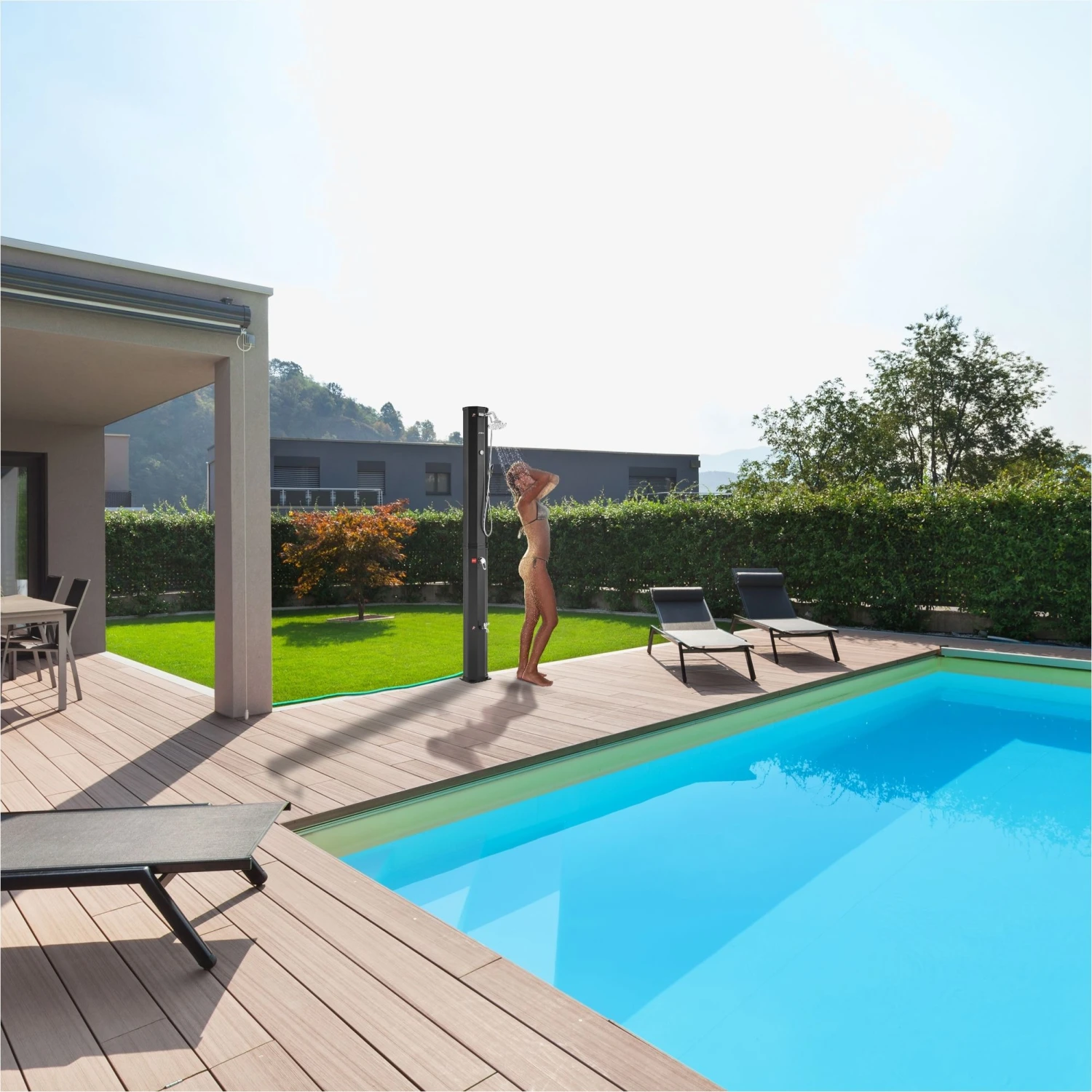 Dusche kann in Gärten, auf Terrassen, in Schwimmbädern und sogar bei