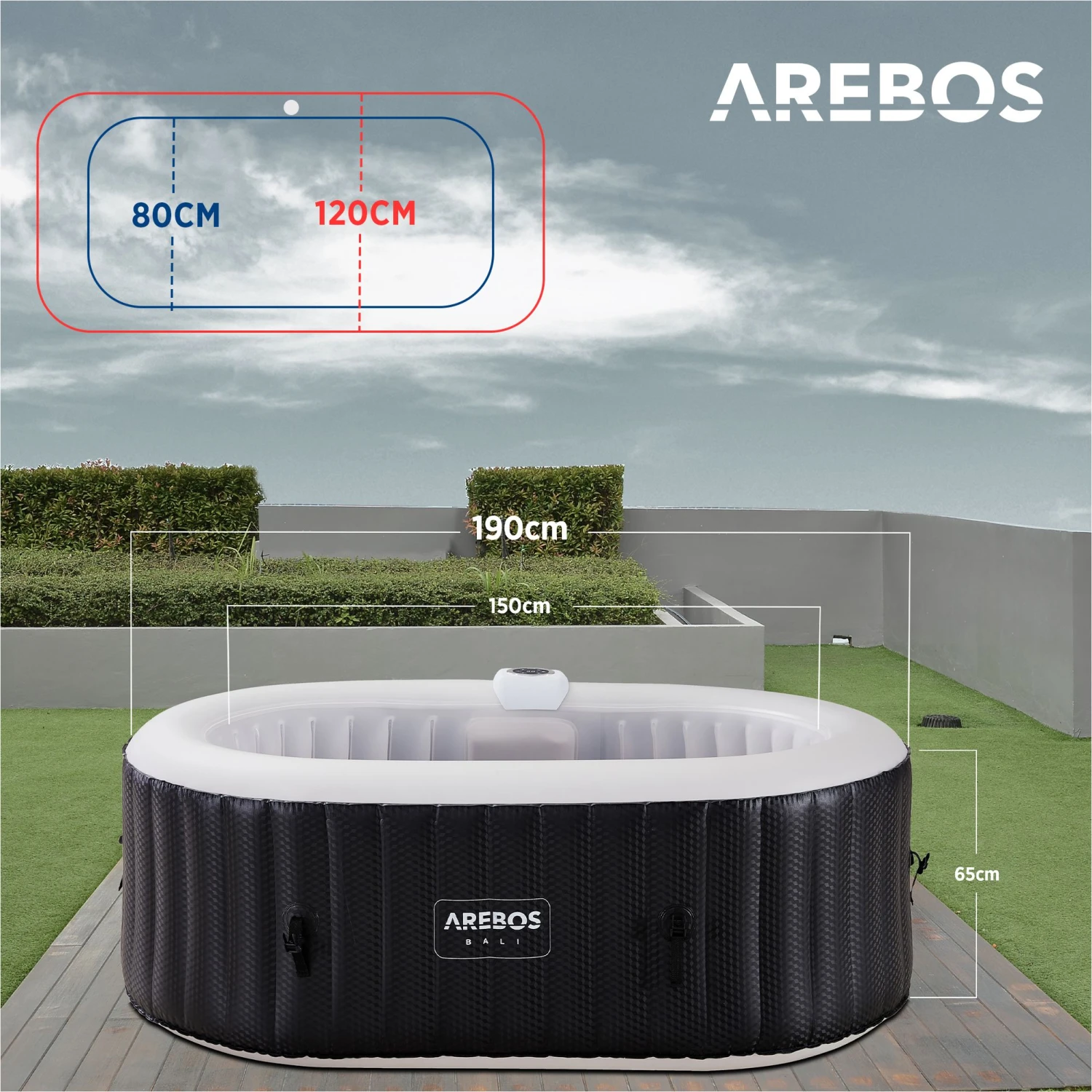 Ob eine Abkühlung am heißen Sommertag oder ein angenehm, warmes Bad im Winter, der aufblasbare Whirlpool von AREBOS garantiert ein entspannendes Massageerlebnis im Freien. In dem selbstaufblasenden Whirlpool können bis zu 2 Personen bequem eine entspannende Massage genießen. Um dies zu garantieren, ist der Pool mit 90 Luftsprudel-Massagedüsen ausgestattet und kann das Wasser auf maximal 40 °C erwärmen.