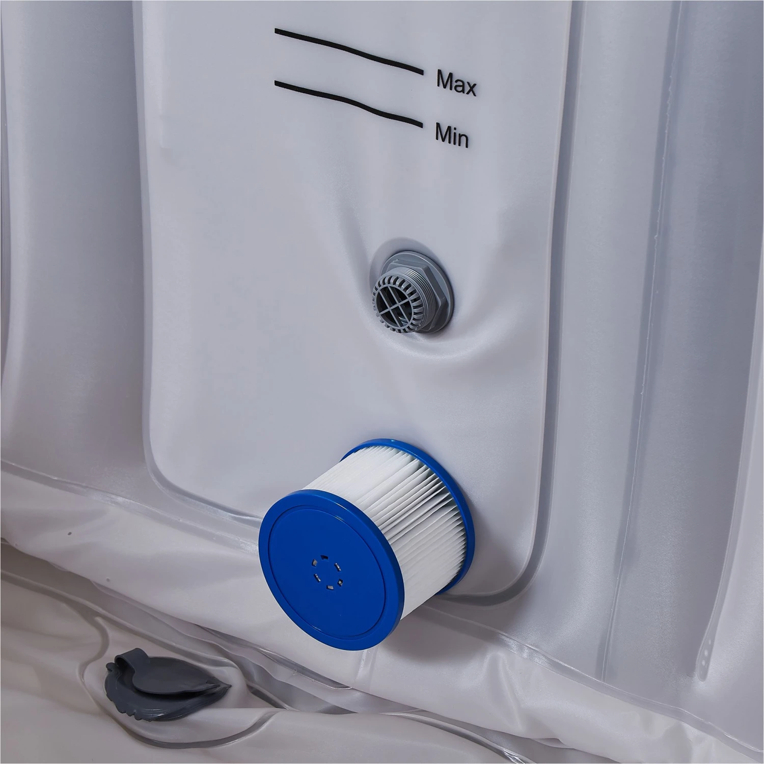 Inkl. Isolier-Abdeckung und Bodenmatte zum Schutz vor Umwelteinflüssen. Außerdem ist die Filteralarm-Funktion mit inbegriffen: Sie zeigt automatisch an, zu welchem Zeitpunkt Sie den leicht zugänglichen Filter reinigen oder ersetzen sollten. Der integrierte Filter reinigt das Sprudelbad während des Betriebs kontinuierlich und effizient. Sauberes Wasser sorgt dafür, dass jeder Besuch im Whirlpool ein allumfassendes Wohlgefühl garantiert.