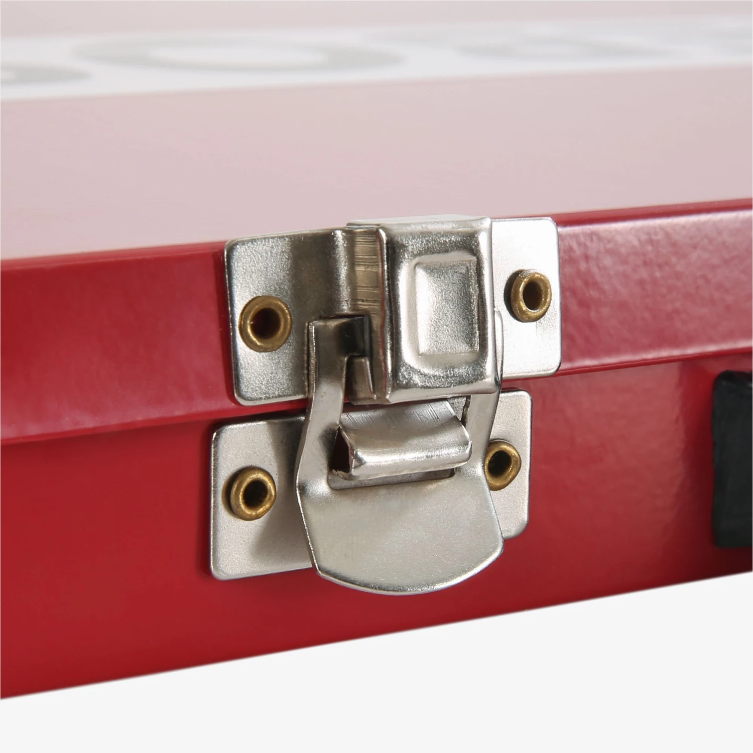Das Set wird in einem äußerst stabilem und praktischem Metallkoffer geliefert. Der Koffer hat einen ergonomischen Kunststoffgriff sowie zwei Schnappverschlüsse aus Metall.