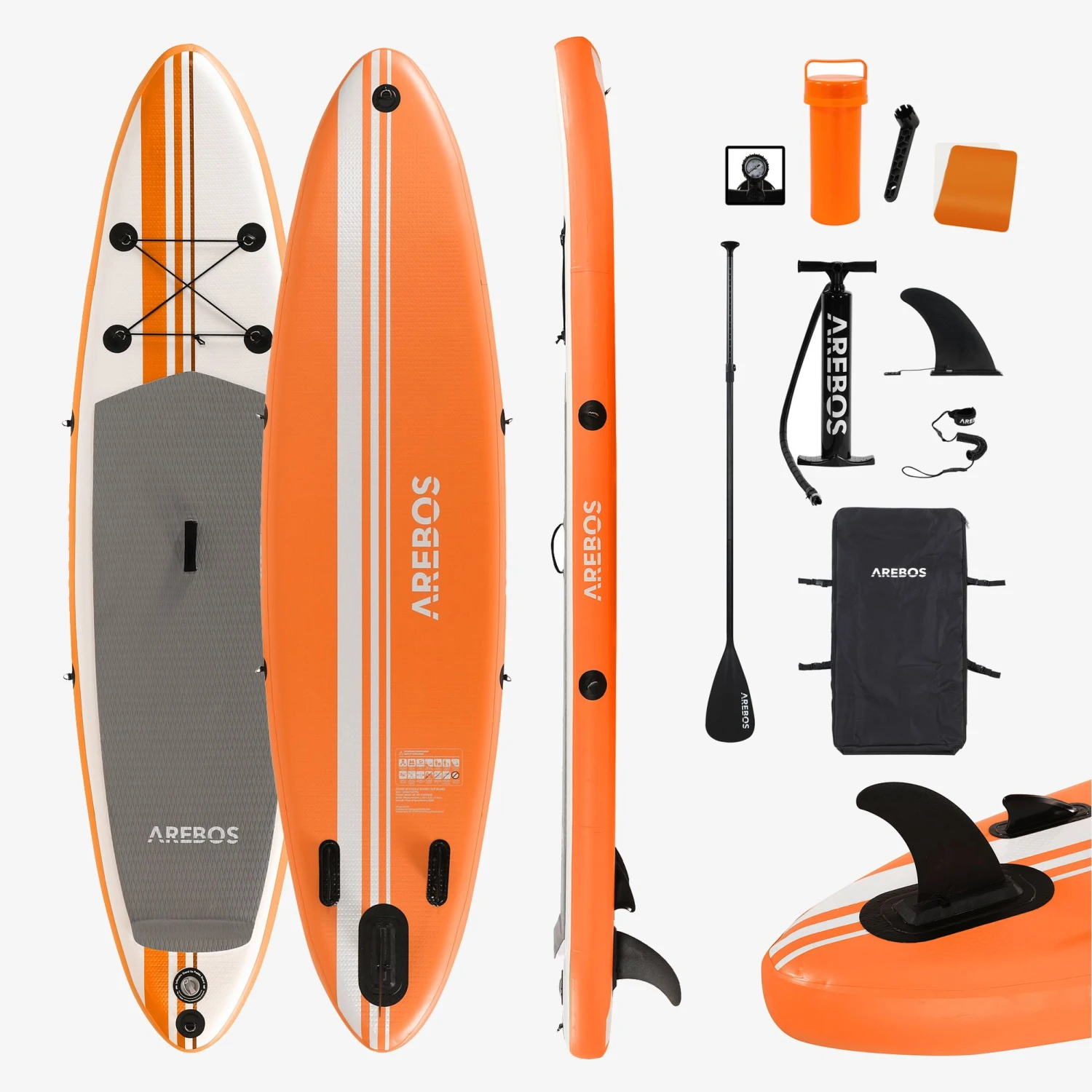 enthaltene Luftpumpe mit Druckanzeige Das Arebos SUP Board ist in