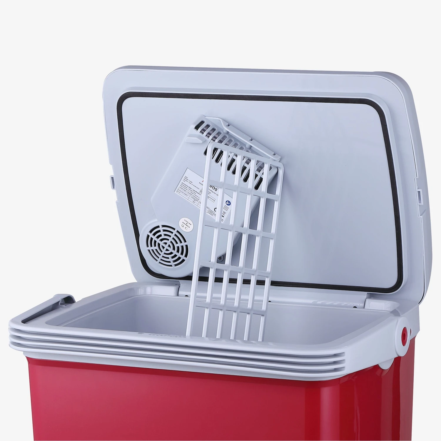 Sie können problemlos eine Vielzahl an Speisen und Getränke verstauen. Alles zusammen, nebeneinander, übereinander. Ob z. B. zum Camping, beim Einkauf oder auf Reisen – mithilfe des klappbaren Tragegriffs ist die Kühlbox leicht zu transportieren. Der Tragegriff dient je nach Bedarf als Deckelverriegelung oder Deckelstütze. Der herausnehmbare Gittereinsatz ermöglicht geordnetes verstauen in der Kühlbox.