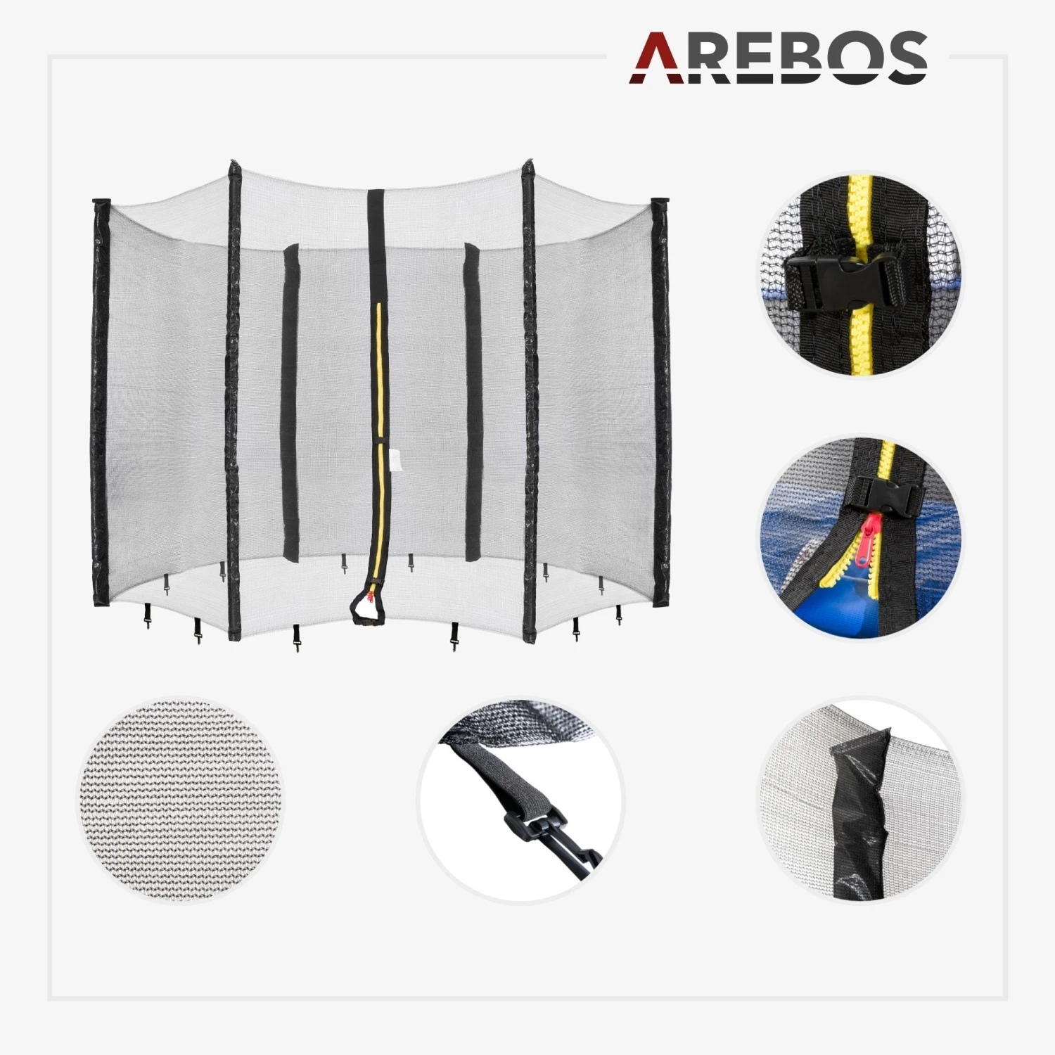 Mit den Randabdeckungen und den Netzen von AREBOS machen Sie ihr Trampolin wieder startklar für den Sommer.