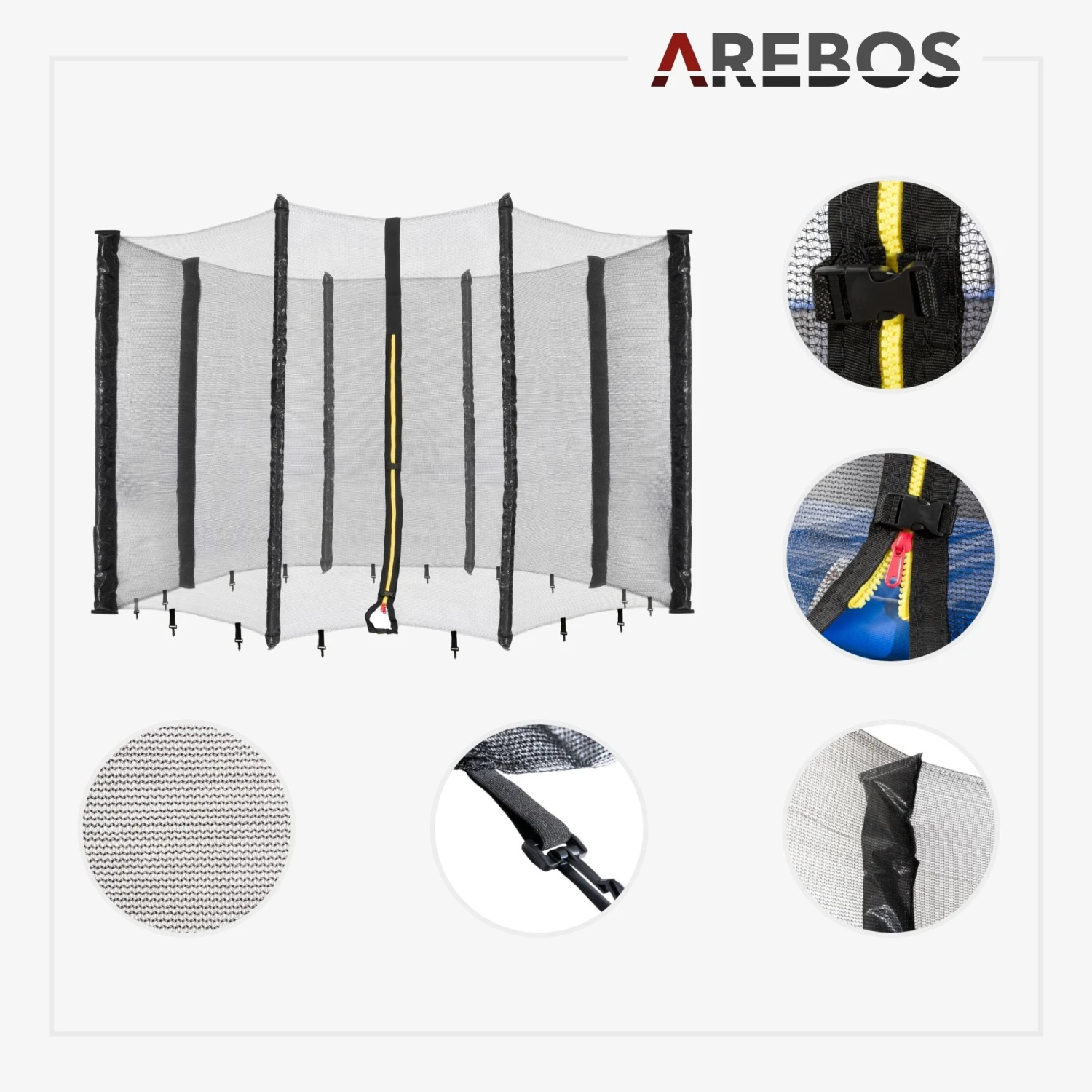 Mit den Randabdeckungen und den Netzen von AREBOS machen Sie ihr Trampolin wieder startklar für den Sommer.