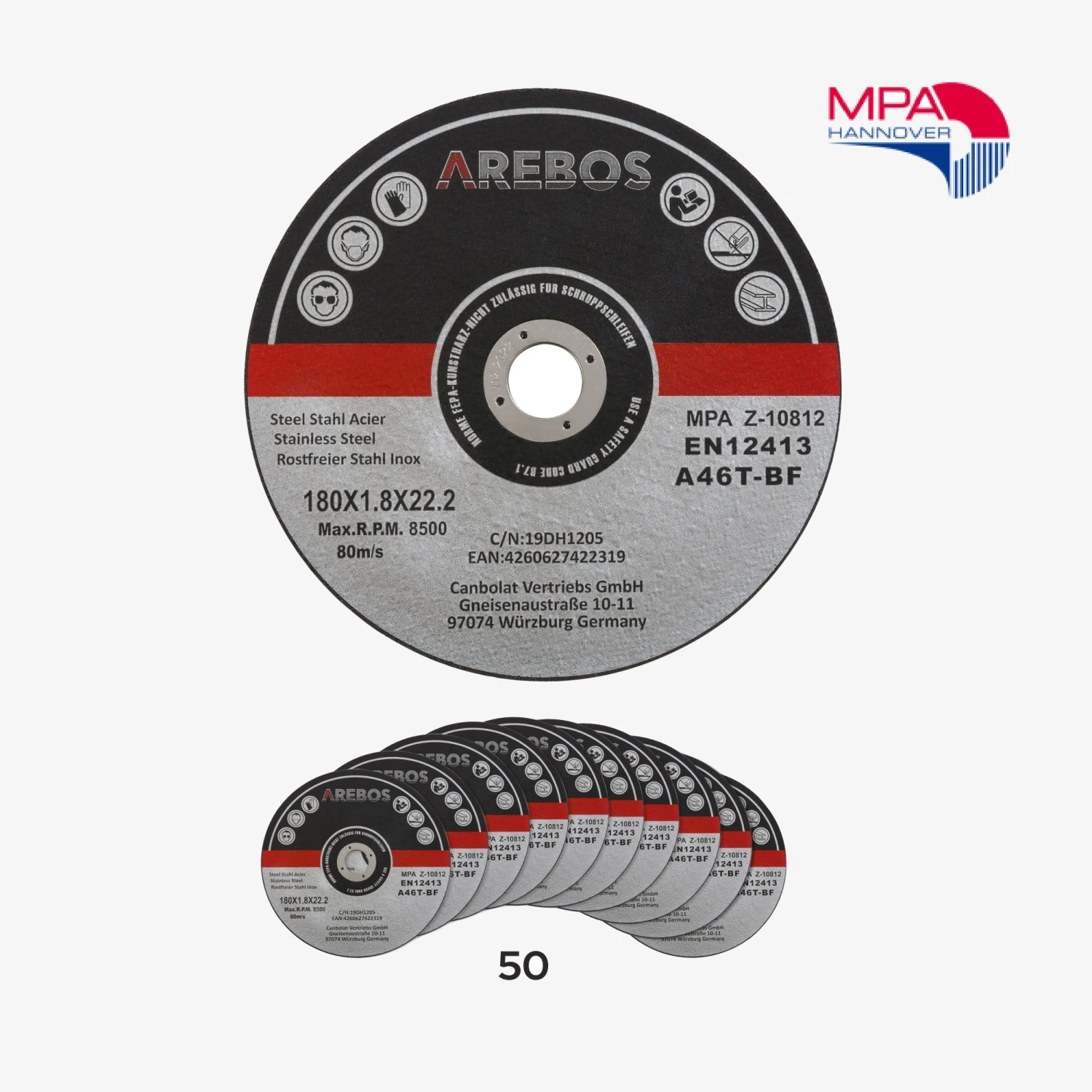 Die AREBOS Trennscheiben vereinen Sicherheit, Geschwindigkeit und Qualität in einem Produkt. Testen Sie unsere Trennscheiben und überzeugen Sie sich, wie bereits viele Kunden vor Ihnen, von den tollen Ergebnissen, die Sie mit unseren Trennscheiben erzielen können.