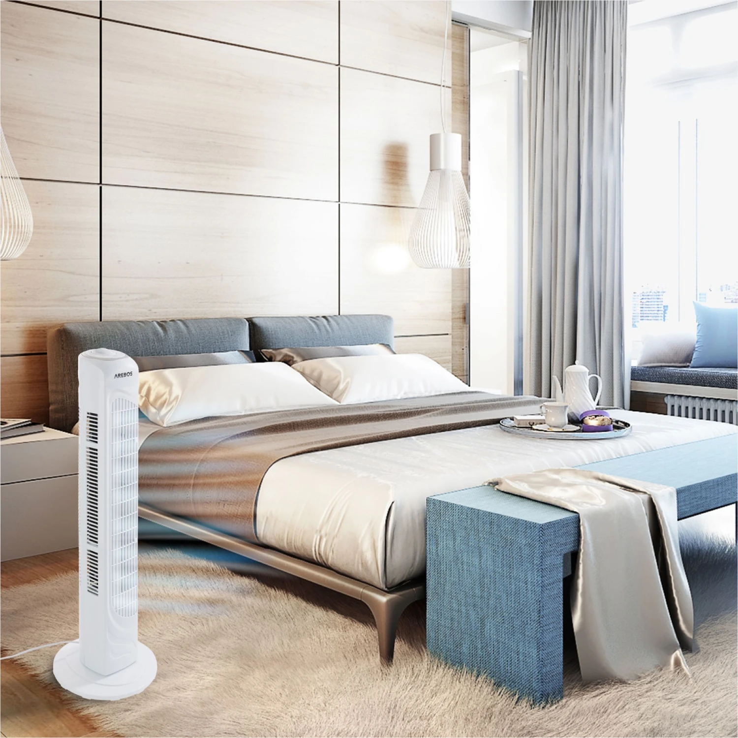 Durch den ruhigen Lauf bei nur 54 dB eignet sich der AREBOS Turmventilator auch für den Betrieb während warmer Sommernächte, ohne den Schlaf zu stören.