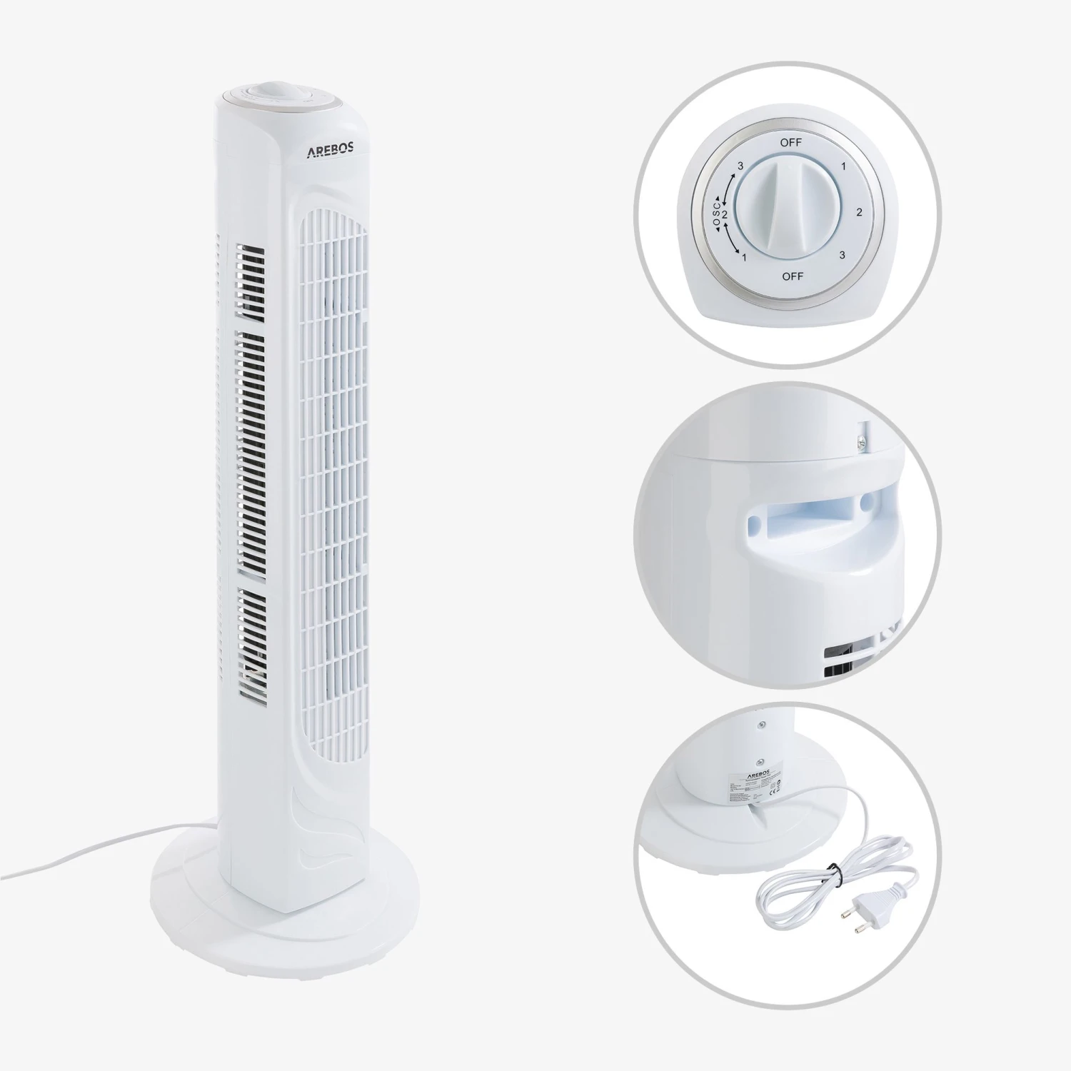 Praktisch, effizient und einfach zu bedienen – das ist der AREBOS Turmventilator. Sichern Sie sich jetzt Ihr Modell!