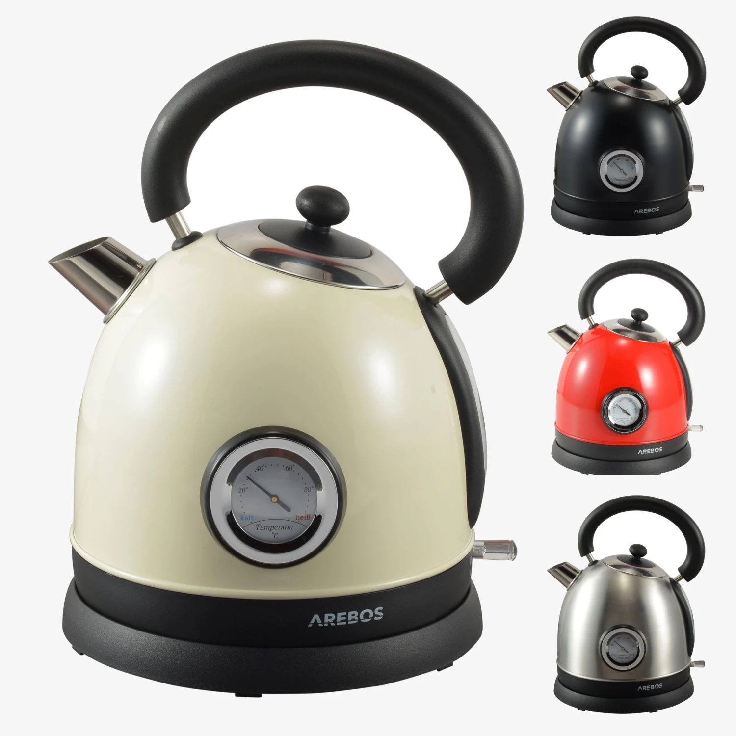 AREBOS – Retro Edelstahl Wasserkocher 3000 W mit Thermometer