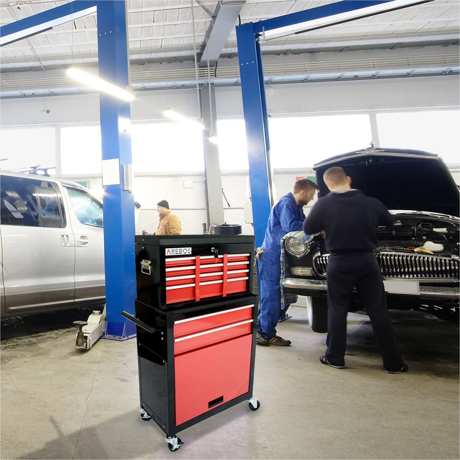 Dann ist der AREBOS Werkzeugwagen genau das richtige für Sie! Er ist die optimale Ergänzung für jeden Handwerksbetrieb, jede Kfz-Werkstatt und auch für Ihre Hobbywerkstatt.