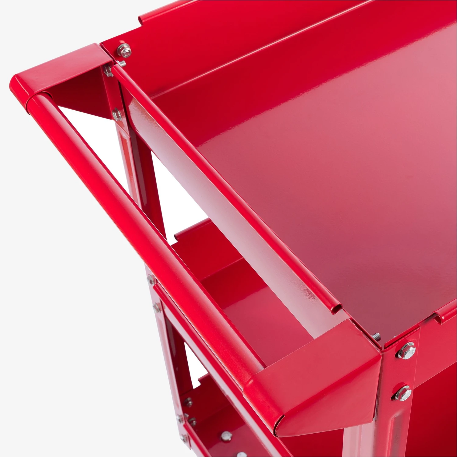 Durch seine praktische Größe kann der AREBOS Werkstattwagen in jede kleine Ecke passen. Die drei groß dimensionierten Etagen bieten viel Platz für allerlei Werkzeuge und Materialien.