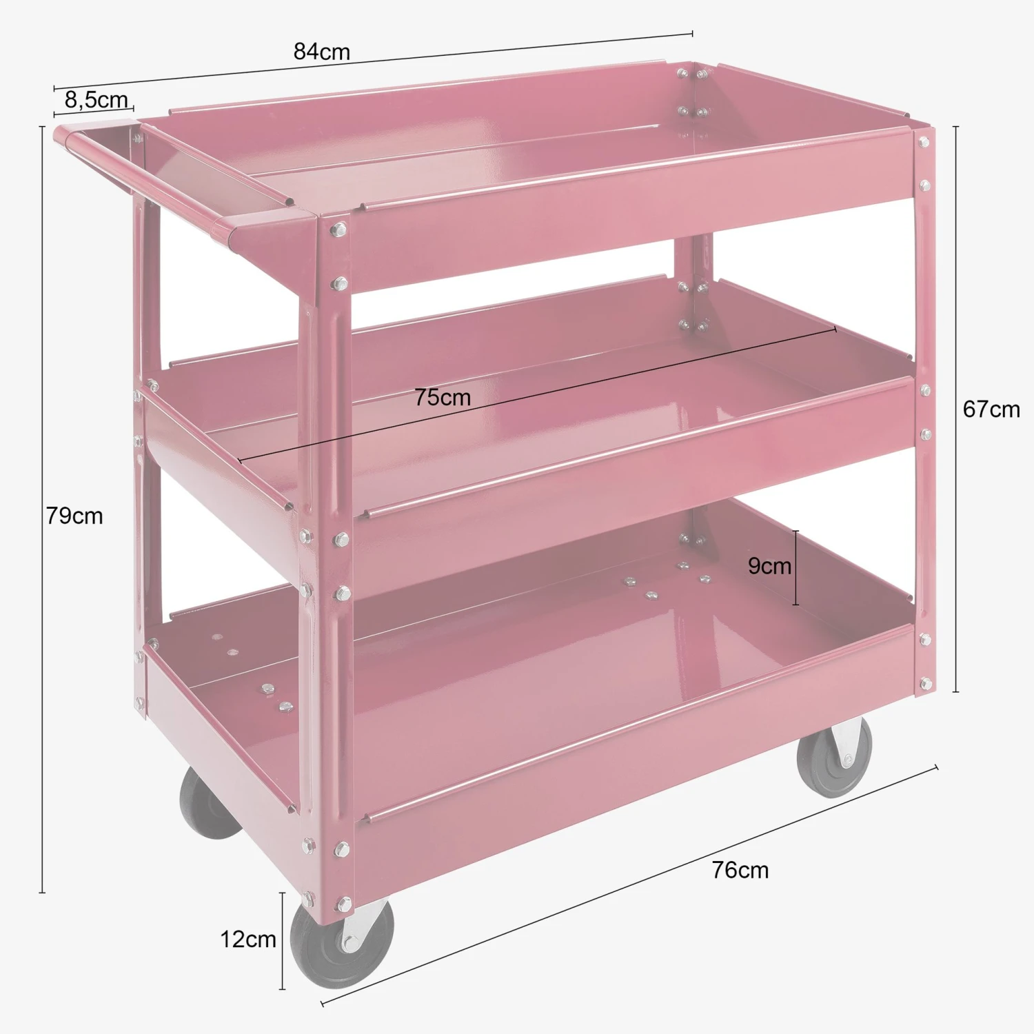Der multifunktionale Etagenwagen kann in der Werkstatt Anwendung finden, eignet sich aber auch für die Gastronomie als Servierwagen. Dank der hohen Traglast kann der Rollwagen auch als mobile Ablage für schwere Werkzeuge genutzt werden kann. In den Fächern können Sie Ihr Werkzeug einfach und griffbereit verstauen.